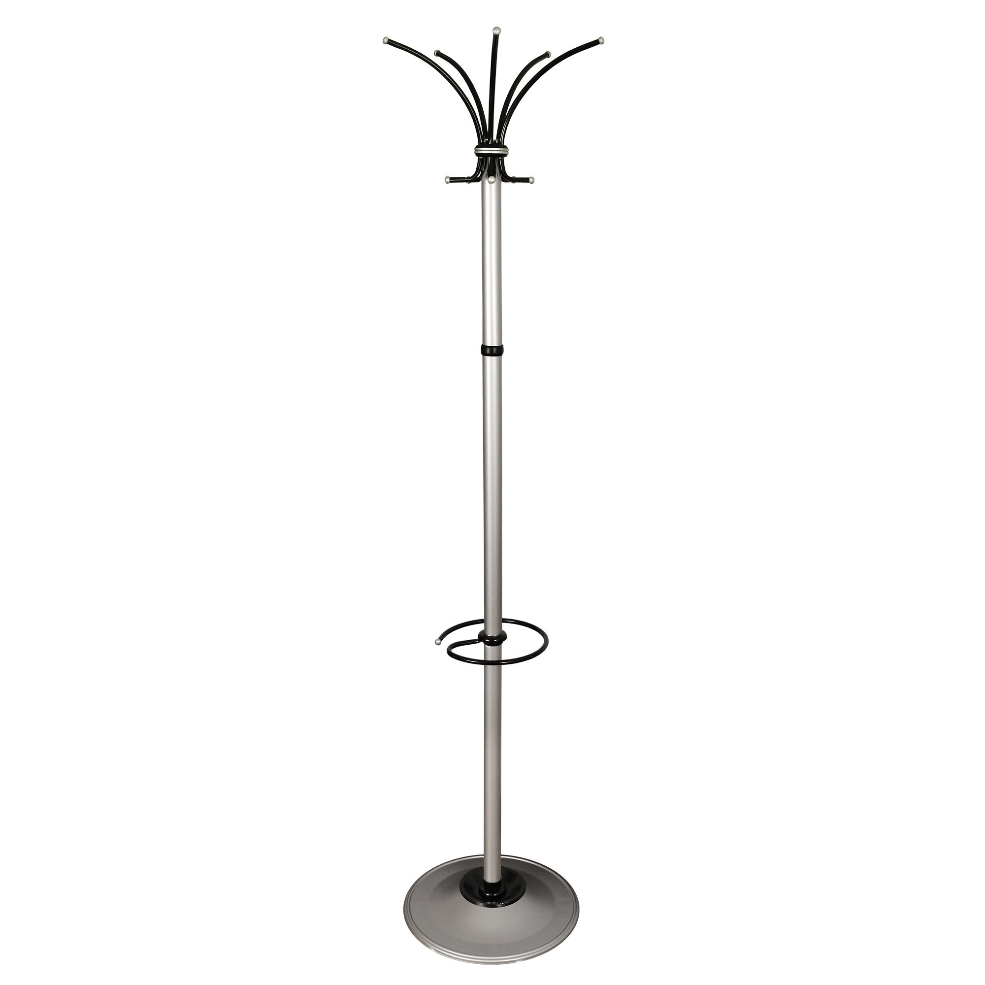 Вешалка напольная Бюрократ Класс (Ц) ТМЗ серебристый основание круг наконечники черный 606/ALUMINIUM