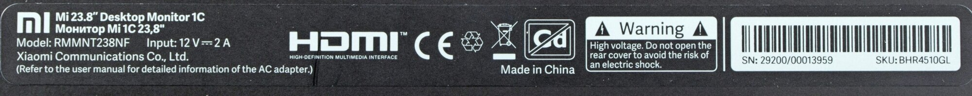 Монитор XIAOMI Mi Desktop Monitor 1C 23.8" черный [bhr4510gl]