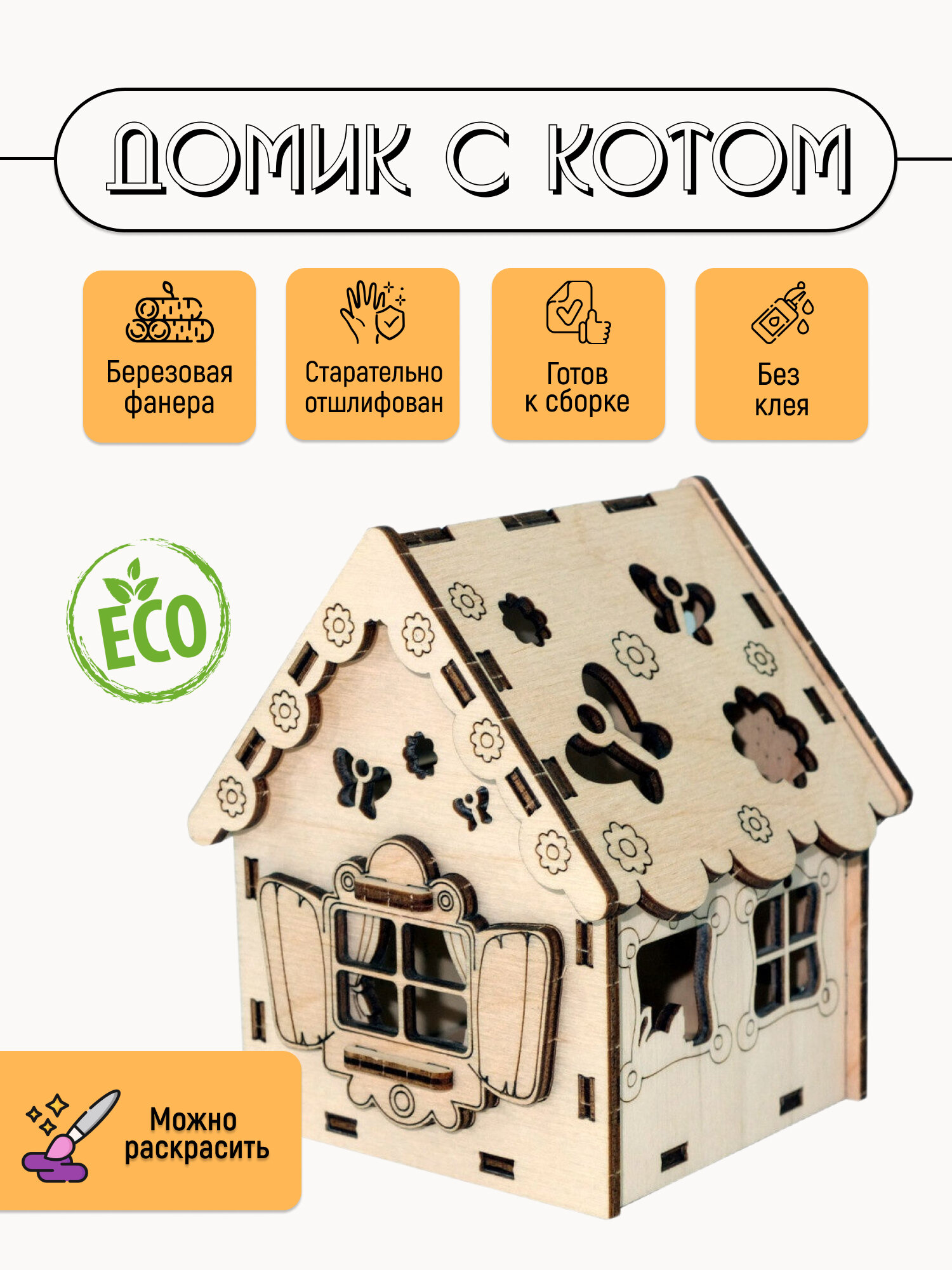 Конструктор деревянный \"Домик c котом\""" Древо Игр (DI-C006)