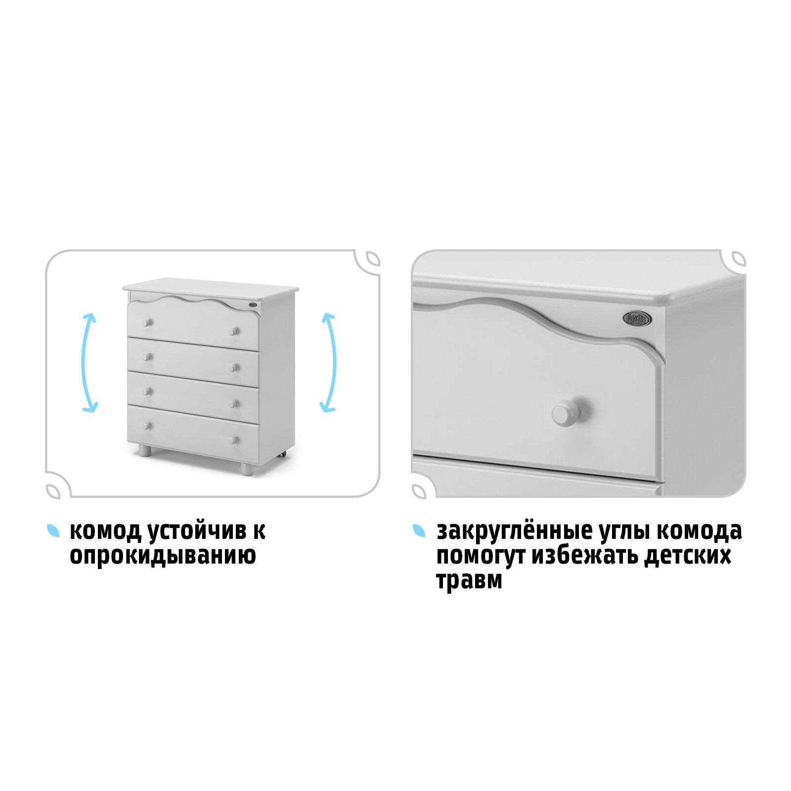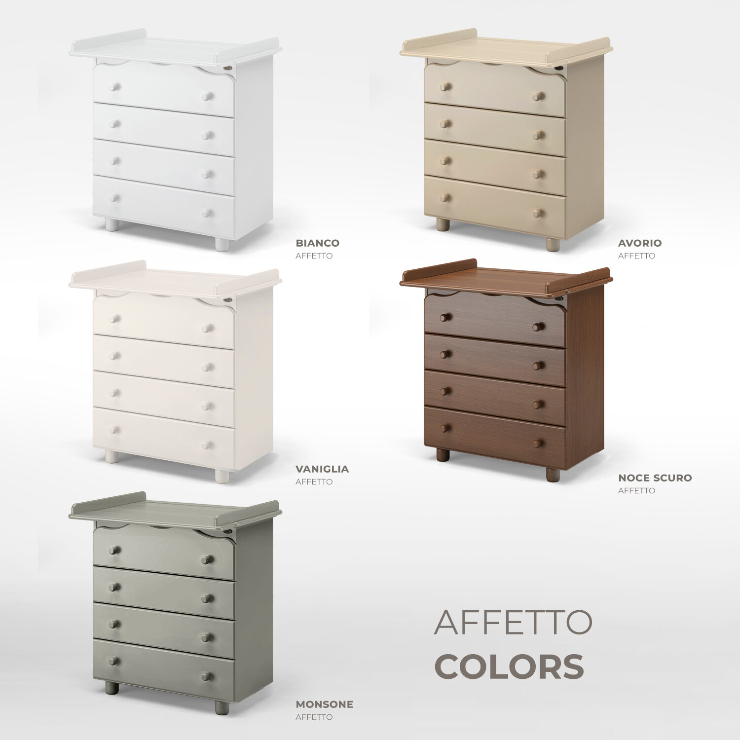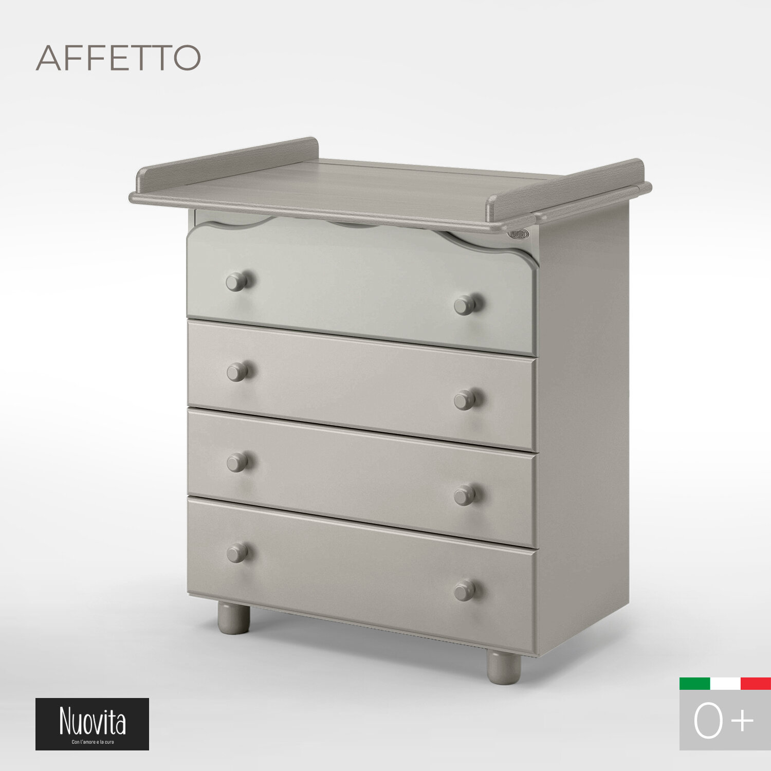Если вы ищете удобный, функциональный и безопасный детский пеленальный комод, то обратите внимание на модель Affetto итальянского бренда Nuovita. Компактный, стильный и добротный деревянный комод отлично впишется в интерьер детской и облегчит выполнение ежедневных процедур, таких как пеленание, смена подгузников, массаж и уход за кожей ребенка. Комод Affetto включает четыре