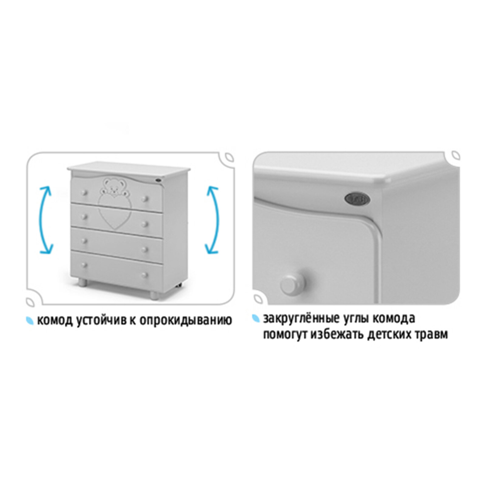 Комод Нуовита Фортуна оснащается легкосъемной пеленальной доской с двумя бортиками, которая о