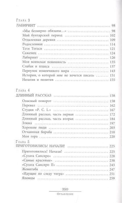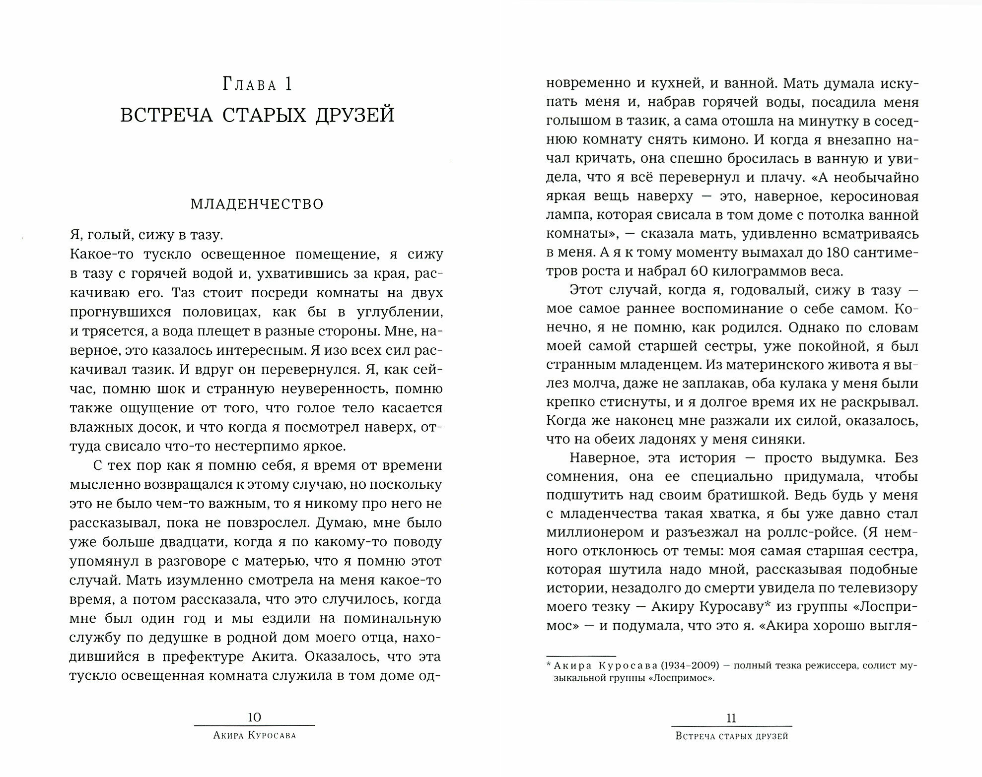 Одна из подстерегающих неожиданностей -- подробное повествование о детстве, школьных годах, молодости и становлении под крылом наставника Ямы-сана, сменяется сжатыми рассказами о режиссёрских работах самого Куросавы, которые резко обрываются на "Расёмоне". В книге, написанной в 1981 нет почти ничего про последние 30 лет до её написания.