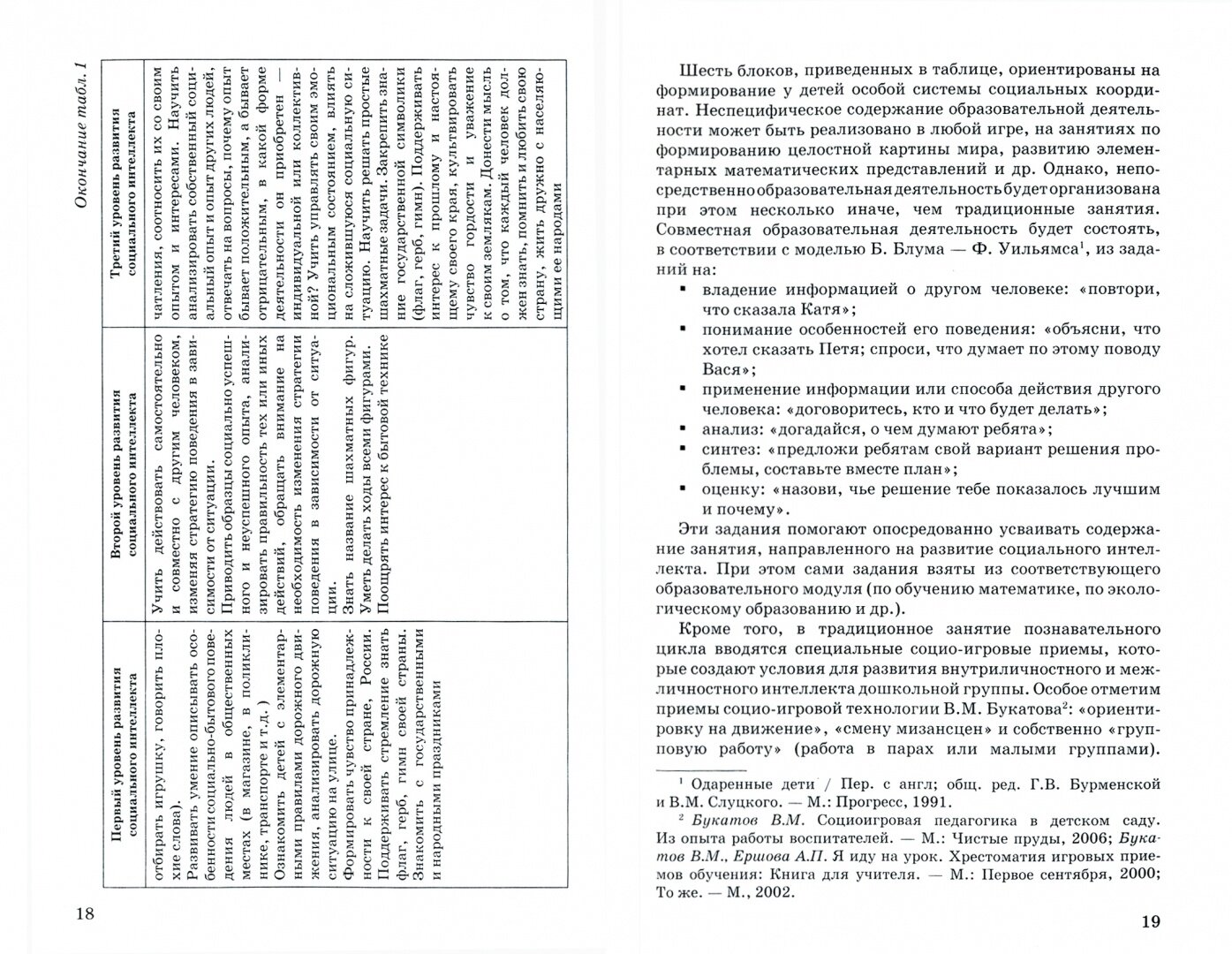 Парциальная программа «Открытие мира: я и другие» решает задачи развития эмоционального, внутриличностного и межличностного интеллекта средствами познавательной деятельности. В соответствии с этими задачами, описывается система планирования и определяется содержание образовательной деятельности в детском саду в режимных моментах: на основе комплекса игровых и коммуникативных ситуаций дети учатся обобщать, анализировать и проводить аналогии между эмоциями и чувствами людей, социальными явлениями и феноменами. Это происходит на играх-занятиях познавательного цикла (по формированию целостной картины мира и экологическому образованию, по развитию элементарных математических представлений, обучению элементам исследовательской деятельности и экспериментированию, конструированию). На специальных тренингах и практикумах дети овладевают системой творческих действий, связанных с социальным проектированием и прогнозом, что улучшает их адаптацию и социализацию. Результаты реализации программы описываются через мониторинг индивидуального развития дошкольников.