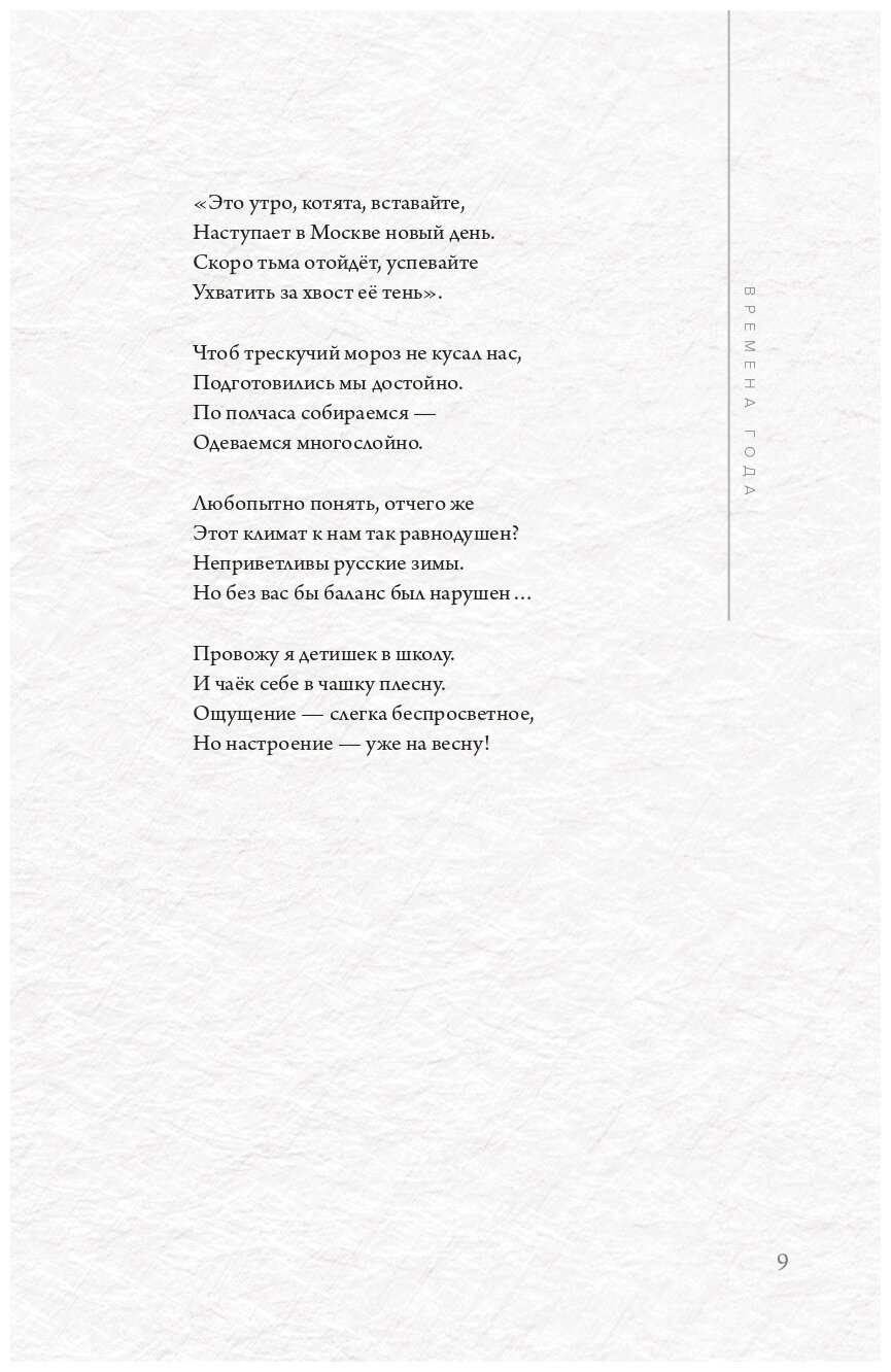 Мне очень понравилась эта книга. Стихи очень глубокие, нестандартный слог, вроде бы читаешь простую информацию, но многое между строк и уходит в глубину и начинаешь задумываться о вопросах, которые важны и глобальны. Стихи задевают тонкие струны души, есть патриотичные, есть лиричные. В них есть лёгкость и в то же время мудрость и глубина. Рекомендую книгу к прочтению каждому
