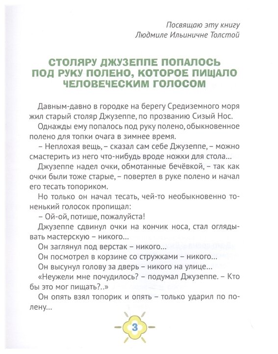 "Когда я был маленький - очень, очень давно, - я читал одну книжку:6 она называлась "Пиноккио, или Похождения деревянной куклы" (деревянная кукла по-итальянски - буратино). Я часто рассказывал моим товарищам, девочкам и мальчикам, занимательные приключения Буратино. Но так как книжка потерялась, то я рассказывал каждый раз по-разному, выдумывал такие похождения, каких в книге совсем и не было. Теперь, через много-много лет, я припомнил моего старого друга Буратино и надумал рассказать вам, девочки и мальчики, необычайную историю про этого деревянного человечка". Алексей Толстой