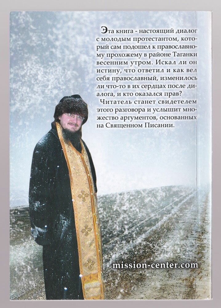 .Эта книга — невымышленный диалог с молодым протестантом, который сам подошел к православному прохожему в районе Таганки весенним утром. Искал ли он истину, что ответил и как вел себя православный, изменилось ли что-то в их сердцах после диалога, и кто оказался прав?