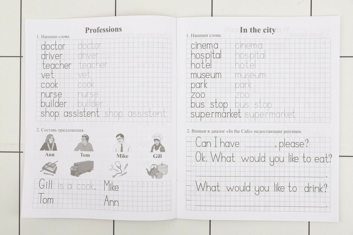 Очень тоненькая и простенькая пропись, которая подойдет для новичков и дошкольников. Помимо стандартных письменных заданий, в книге есть несколько грамматических упражнений (элементарных, но важных: глагол to be, указательные местоимения и так далее). Шрифт внутри печатный, что лично мне не по душе, но это уже дело вкуса. За такую стоимость покупка весьма приятная