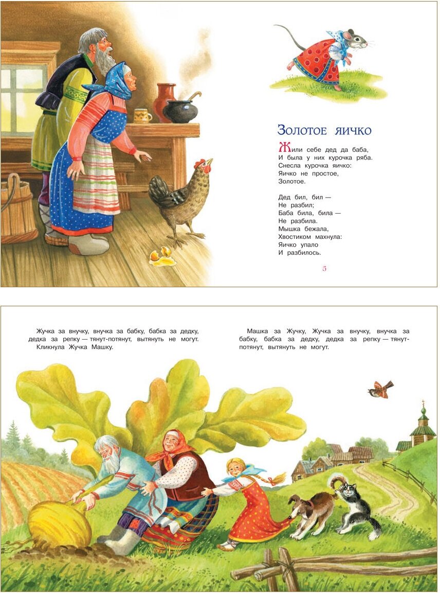 В этот сборник вошли самые известные народные сказки: "Золотое яичко", "Репка", "Колобок", а также "Кот и лиса", "Зимовье зверей", "Лиса и дрозд" и другие сказки. Именно с них начинается знакомство малышей с чудесным русским фольклором, и уже с раннего детства эти сказки становятся самыми любимыми. И неудивительно: ведь их с удовольствием слушали и читали дети разных поколений: прабабушки и прадедушки, бабушки и дедушки, мамы и папы сегодняшних малышей.