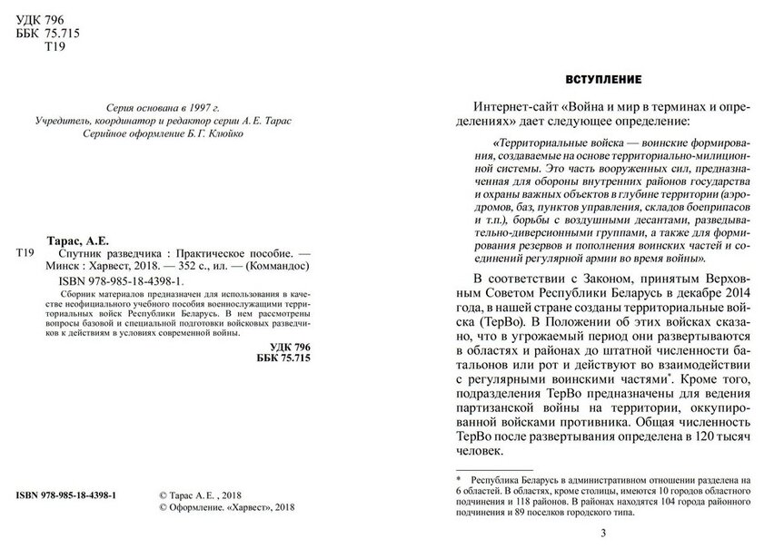 Сборник материалов предназначен для использования в качестве неофициального учебного пособия военнослужащими территориальных войск Республики Беларусь. В нем рассмотрены вопросы базовой и специальной подготовки войсковых разведчиков к действиям в условиях современной войны.