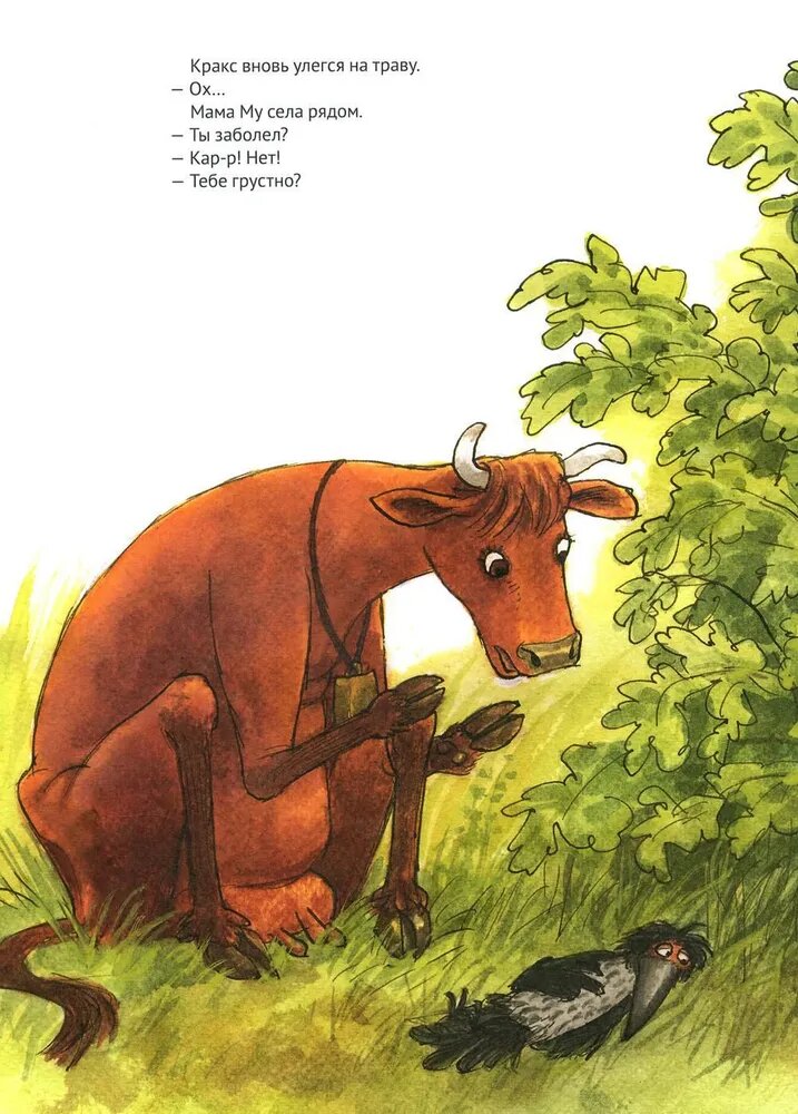 Стала искать другие книги Свена Нурдквиста. Выбор пал на «Маму Му». Иллюстрации попроще, но стиль узнаваем. Надеялась, что имя Нурдквиста связано не только с иллюстрированием, но и со смыслом сказки. К сожалению с текстом книги такой номер не прошёл. Книги серии ( купила их две) мне не понравились. Грубость, обидчивость и надменность вороны вовсе не вписываются в те качества, которые я хочу воспитывать в детях. А именно с героев книги дети берут пример.