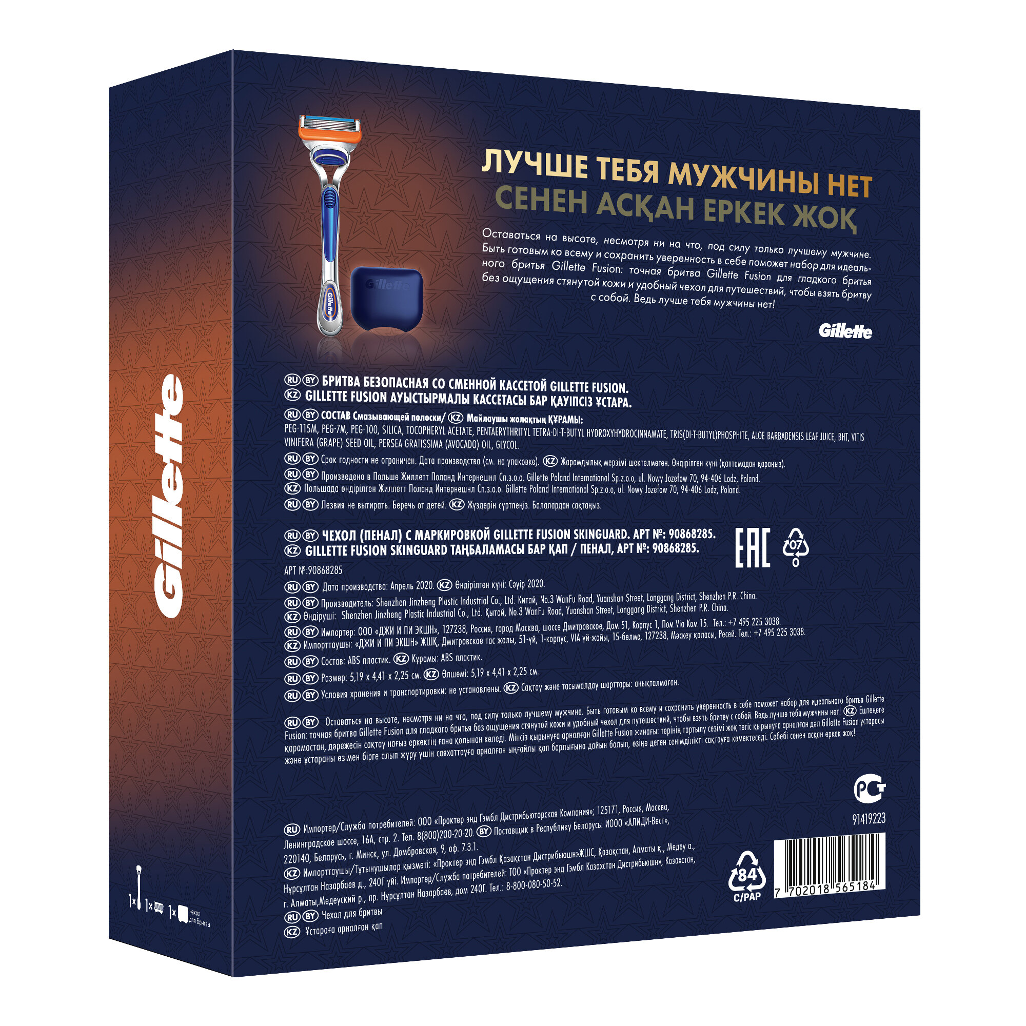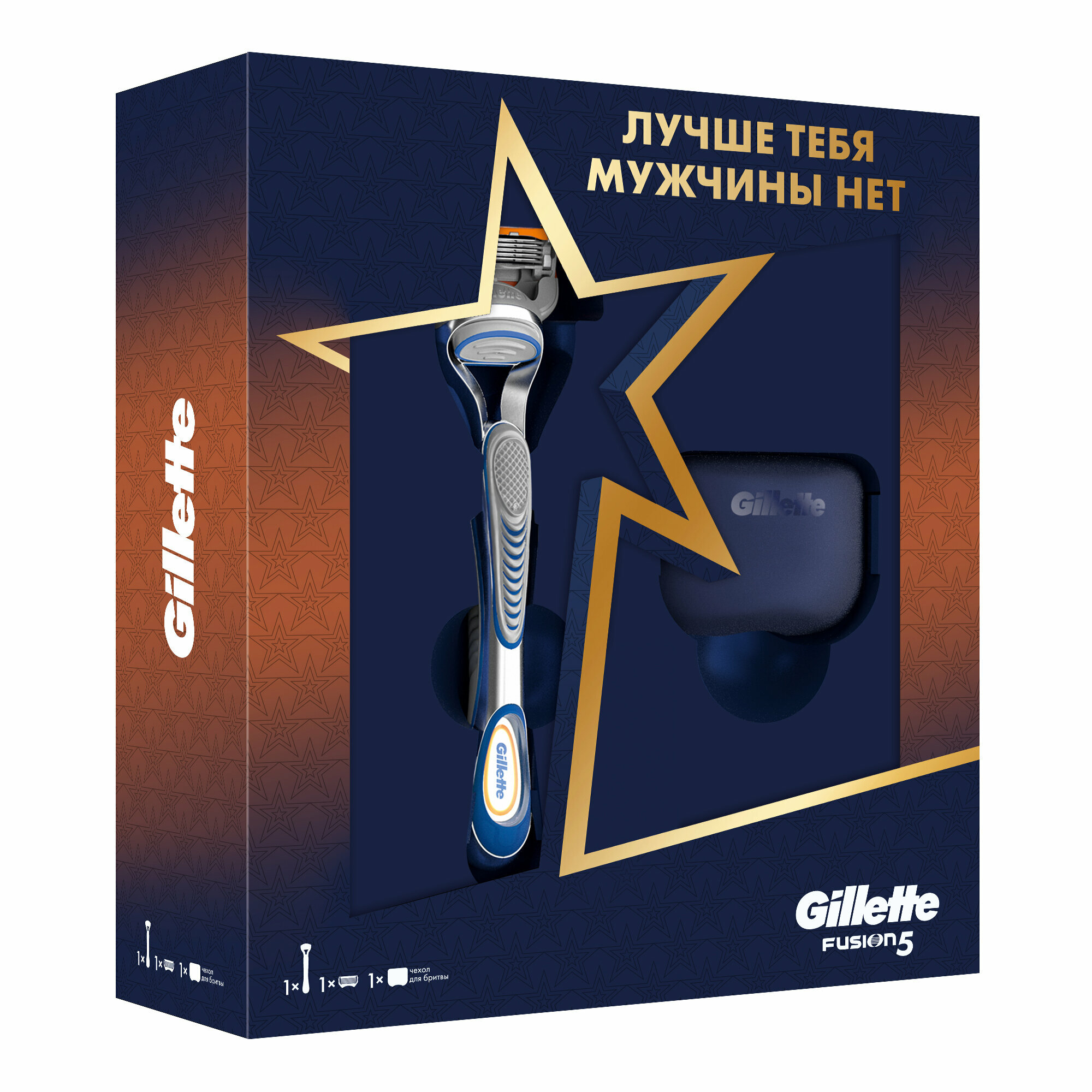 Оставаться на высоте, несмотря ни на что, под силу только лучшему мужчине. Быть готовым ко всему и сохранить уверенность в себе поможет набор для идеального бритья Gillette Fusion: точная бритва Gillette Fusion для гладкого бритья без ощущения стянутой кожи и удобный чехол для путешествий, чтобы взять бритву с собой.