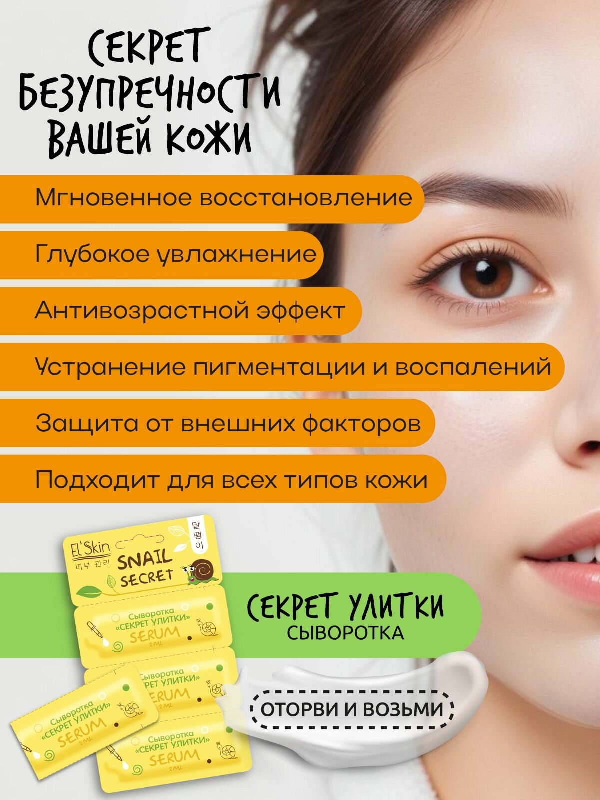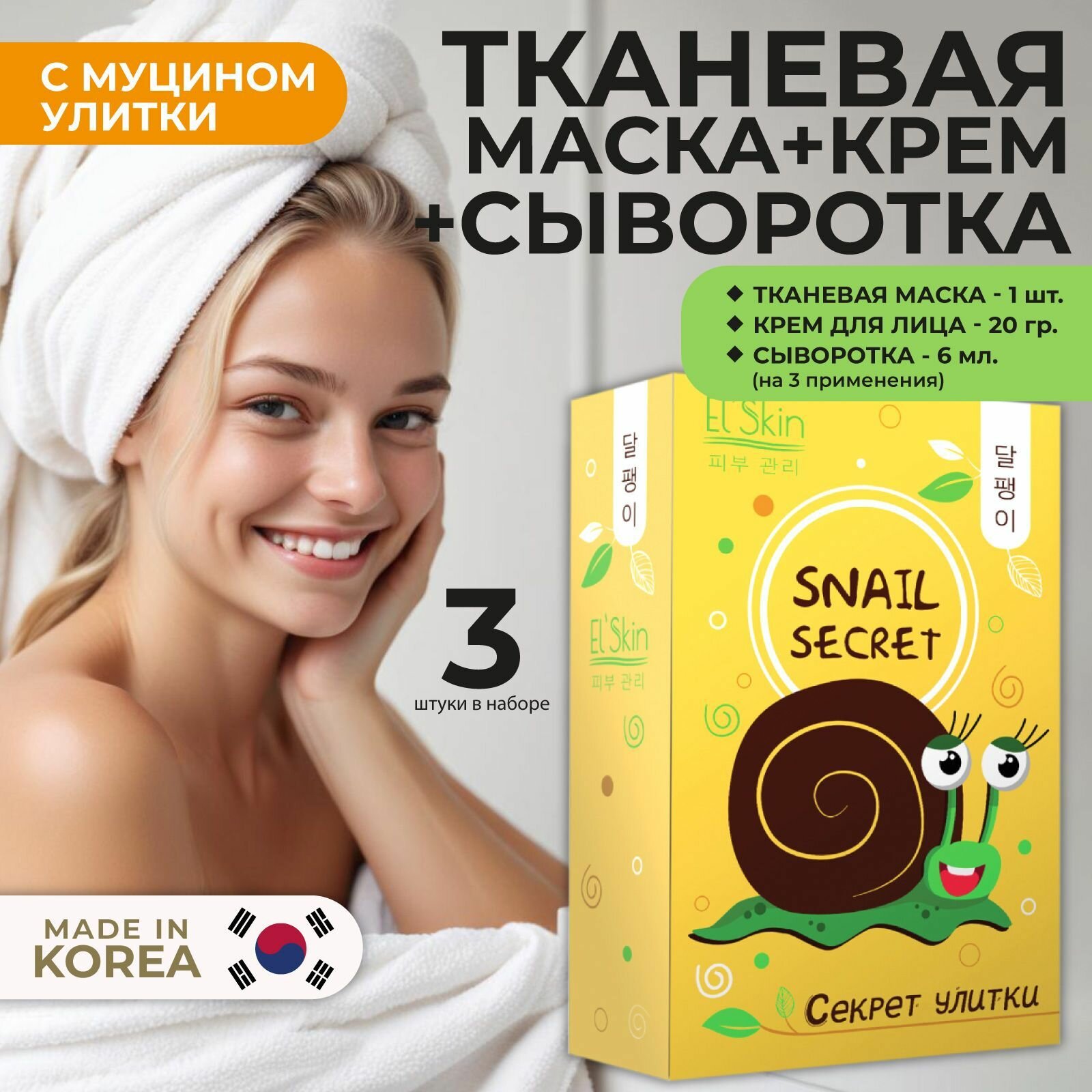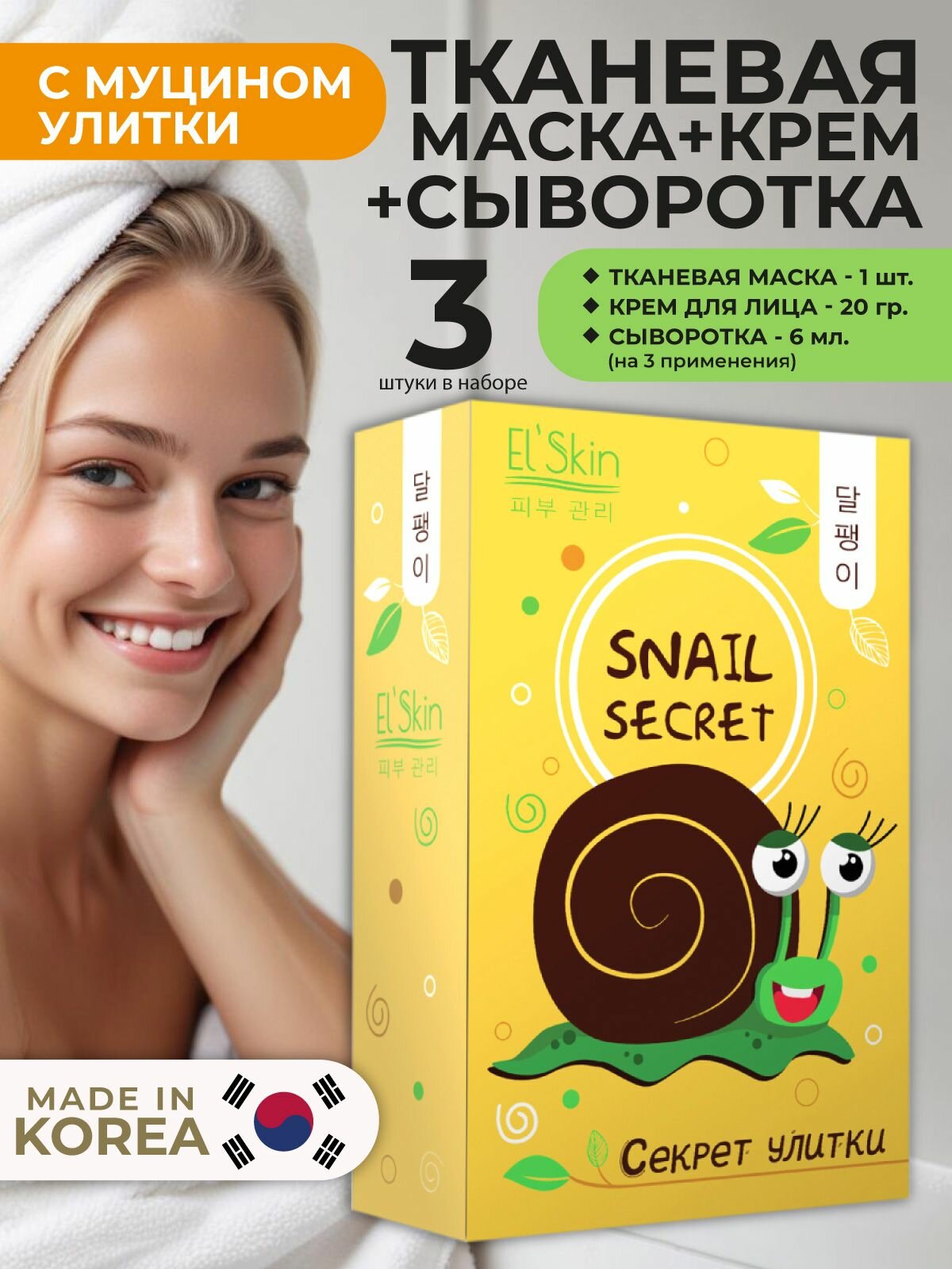 Подарите себе или своим близким уникальный beauty box от бренда El’skin из трех средств с муцином улитки — идеальный подарок на день рождения, новогодние праздники или просто как приятный сюрприз. Этот набор станет настоящей находкой для женщин, стремящихся к уходу за кожей и желающим сохранить молодость и красоту.1. Сыворотка «Секрет улитки» — мощное средство для быстрого восстановления кожи. Она мгновенно проникает вглубь дермы, устраняя сухость и шелушение, заполняя морщины и насыщая кожу влагой. Благодаря высокой концентрации натурального муцина, сыворотка обладает тягучей консистенцией и активизирует выработку коллагена и эластина, придавая лицу здоровый и ухоженный вид.2. Крем для лица «Секрет улитки» — нежный уходовый продукт, который также обеспечивает быстрое восстановление кожи. Его легкая текстура проникает в дерму, питая и защищая от внешних воздействий. Крем помогает бороться с пигментацией и воспалениями, делая кожу более упругой и ровной.3. Маска для лица «Секрет улитки» — идеальное средство для интенсивного ухода. Всего через несколько минут после применения тканевая маска наполняет кожу влагой и жизненной силой, разглаживая морщины и придавая естественное сияние. Каждый продукт в этом корейском бьюти боксе от бренда Элскин обладает регенерирующими и омолаживающими свойствами, что делает его отличным выбором для ухода за кожей женщин всех возрастов. Подарите своим близким заботу и позвольте им насладиться роскошным уходом!