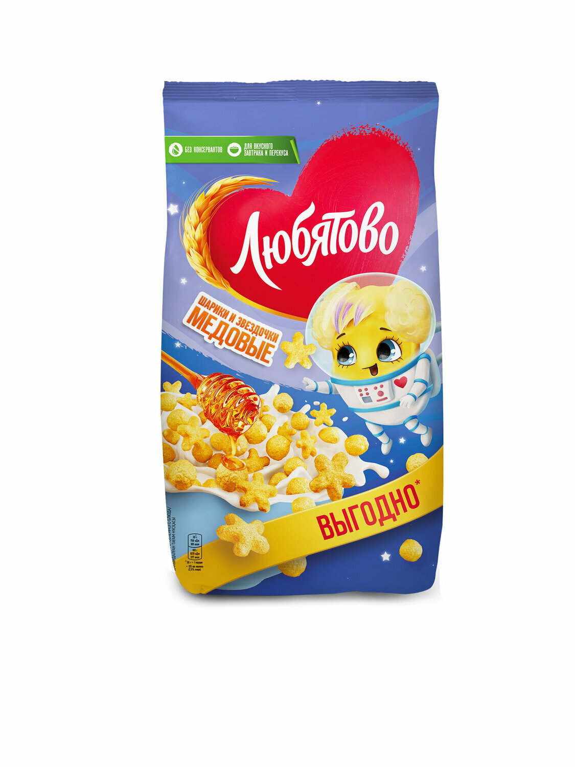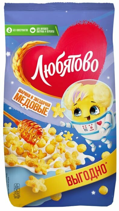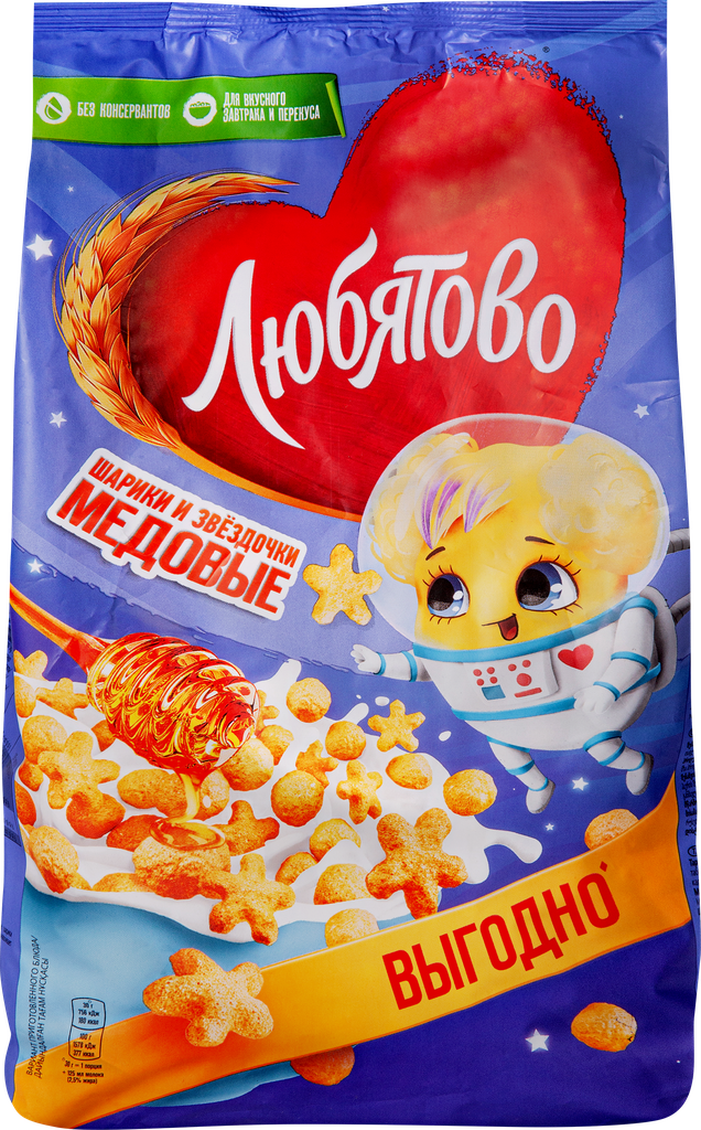 Сухой завтрак Любятово Медовые шарики и звездочки 420г Келлогг Рус