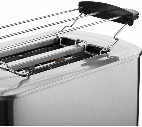 Модель мощностью 850 Вт имеет два отделения для одновременного поджаривания двух больших тостов. Регулировка степени обжарки производится с помощью вращающегося переключателя. По завершении процесса обжарки готовые тосты поднимаются наверх.