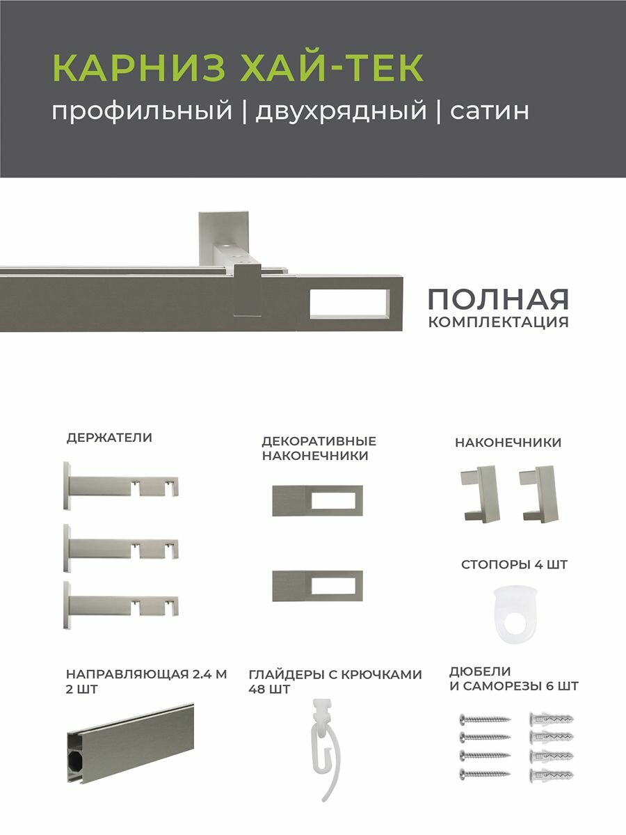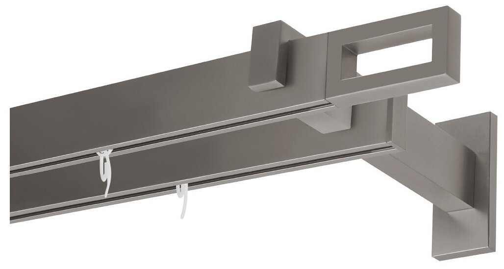 Карниз Хай - Тек - это совершенно новый взгляд на карнизную продукцию. Хай-тек - это декоративный карниз ультрамодного дизайна с функционалом профиля. Усиленная конструкция держателей предполагает подвес плотных тяжёлых портьер, управление которыми осуществляется бесшумным образом благодаря легкому скольжению глайдеров по профилю. При этом, держатель не является препятствием для полного перекрытия оконного проёма, т.к. обеспечивает ход штор от стены до стены. Современный прямоугольный дизайн профиля органично декорируется наконечником стильной геометричной формы.
