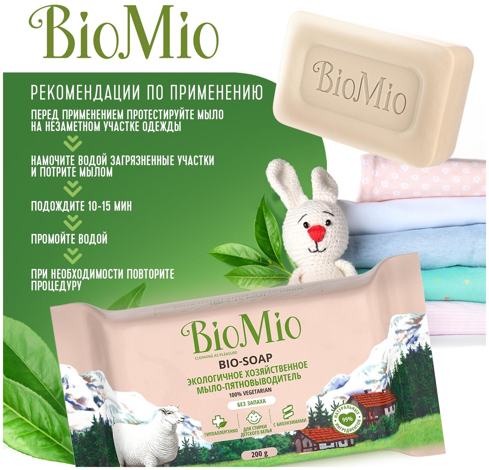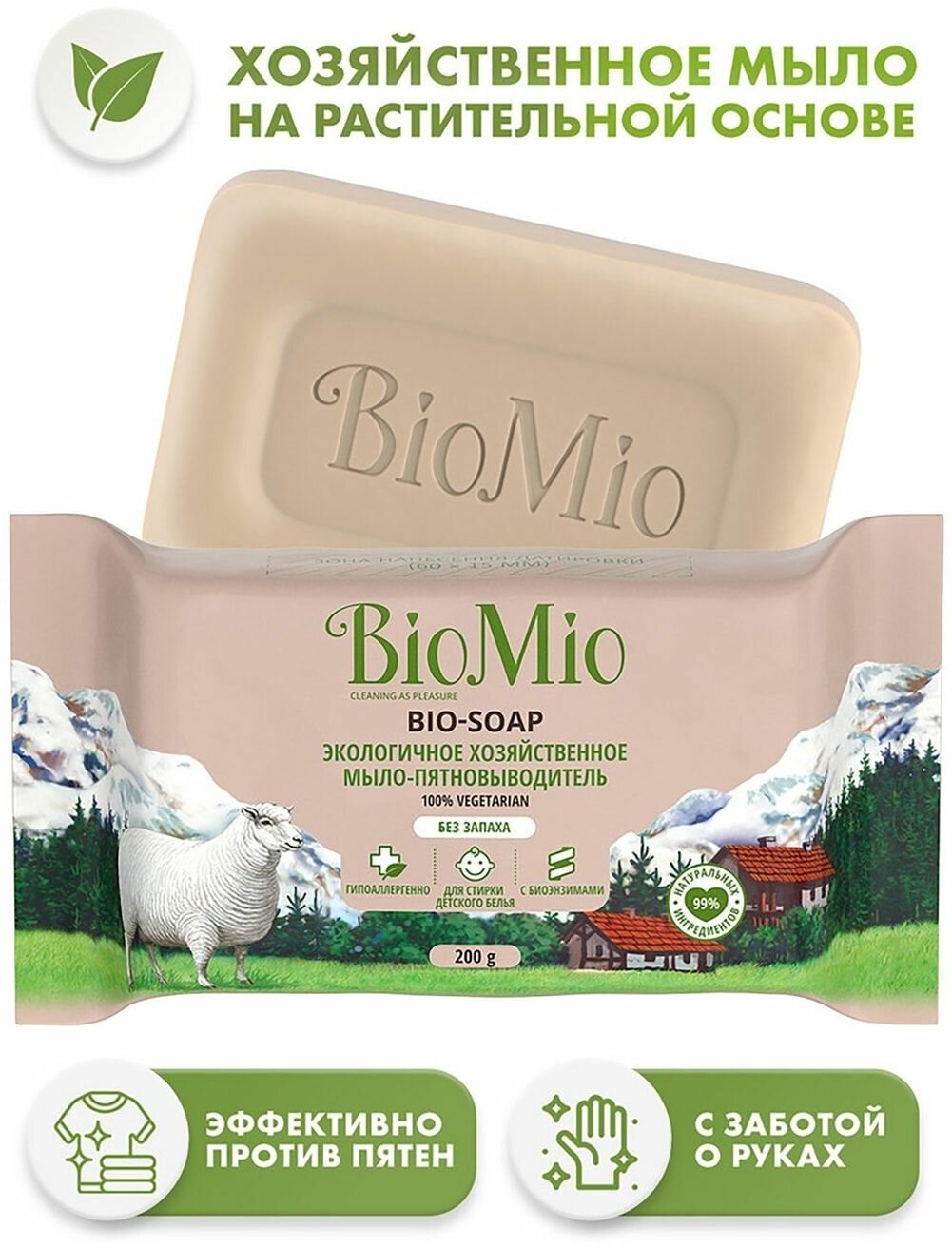 Экологичное хозяйственное мыло-пятновыводитель Bio-Soap эффективно удаляет пятна от растительных масел и жира, фруктовых соков, следов от дезодоранта, а также белковые пятна (в том числе пятна крови, яиц, молока) благодаря специальной формуле, обогащенной биоэнзимами.