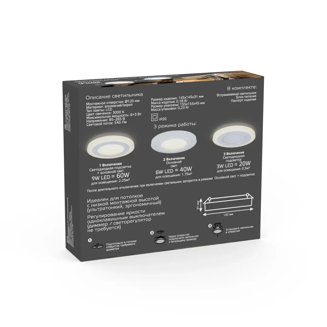 Устройство представлено в двух форм-факторах - квадрат и круг, что расширяет область применения. Не стоит беспокоиться и о цветовой температуре, так как светильники имеют два варианта - 4000К/3000К. Ваше пространство может преобразиться как теплым оттенком, так и приятным холодным светом.
