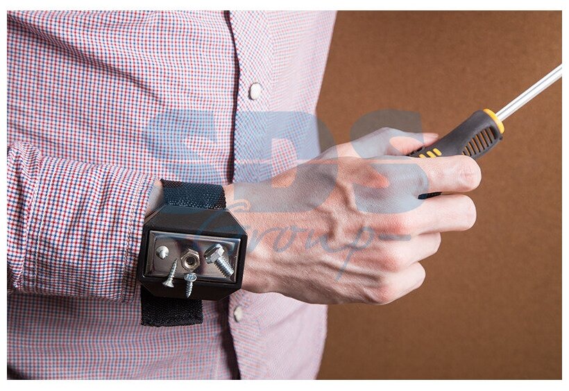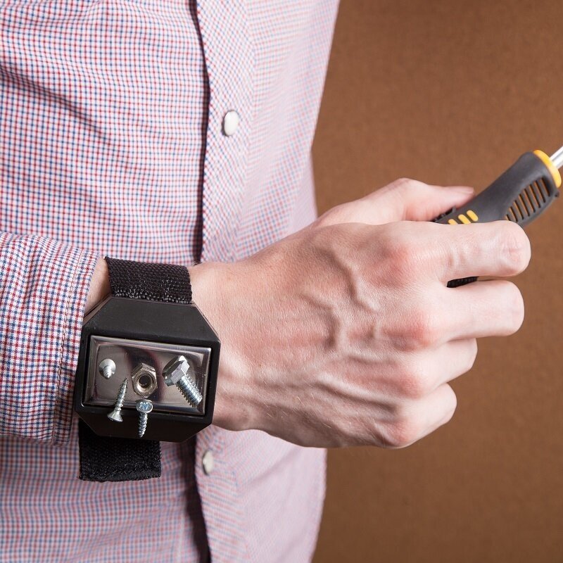 Магнитный браслет на руку предназначен для фиксации метизов, бит, крепежа и других железосодержащих предметов на руке при работе в труднодоступных местах.