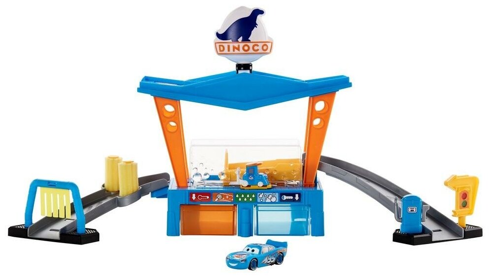 Получите взрыв хорошего настроения и чистого веселья вместе с любимыми героями мультфильма «Тачки»! Молния Маккуин мчался к победе по грязным дорогам на небывалой скорости, поэтому теперь ему нужна серьезная мойка. Для начала дайте ему подкрепиться горючим на заправке, а затем сожмите знак Dinoco, чтобы устроить грязнуле хороший душ! Но что за волшебство? Каскад воды преобразил отчаянного гонщика! Съезжайте с платформы вниз по пандусу через сушилку и любуйтесь на новый цвет Молнии Маккуина! Повторите чудесную трансформацию и верните прежнюю окраску, опустив машинку в холодную воду. Особенности— Автомойка Dinoco подарит детям невероятное удовольствие от мытья тачек— Приведите Молнию Маккуина в порядок после гонок и устройте ему настоящий душ— Нажмите на знак Dinoco, чтобы вылить на машинку целый каскад воды, и наблюдайте за волшебной цветной трансформацией— Окуните Молнию Маккуина в холодную воду и верните ему первоначальный цвет— В комплекте вы найдете машинки Молнии Маккуина и автомойщика Питти— Отличный подарок для детей, которые обожают автомобили и интерактивные игры— Захватывающие эксперименты с цветом вызывают у ребенка исследовательский интерес, развивают креативность и мыслительные способности, а также стимулируют любознательность и познавательную активность— Для детей в возрасте от 4-х лет— Производство MattelВ комплекте: 1 игровой набор, 2 машинки