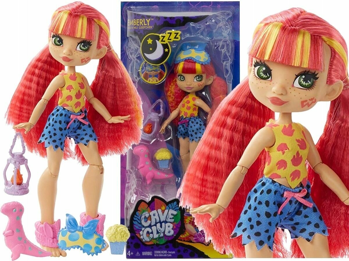Путешествуйте назад во времени вместе с куклами и игровыми наборами Cave Club! В наборе «Пижамная вечеринка Эмберли» есть все, чтобы устроить первую в истории веселую ночевку с друзьями: кукла с необычной прической, уютный наряд для сна с анималистичным принтом, маска для глаз и 3 аксессуара. Юным искателям приключений понравится сочинять истории о дружбе и жизни в незапамятных временах.Соберите всех кукол Cave Club и наборы, разыгрывайте увлекательные сюжеты с целой доисторической командой! Каждый набор продается отдельно.Кукла не может стоять без опоры.Цвета и элементы декора могут отличаться от изображений.Особенности— Встречайте персонажей Cave Club — пещерных детей, намного опередивших свое время! — В наборе «Пижамная вечеринка Эмберли» представлена кукла с неоновыми оранжевыми волосами и забавным нарядом в доисторическом стиле— Эмберли готова к первой в истории пижамной вечеринке, присоединяйся!— В аксессуары входят попкорн, игрушечный динозавр и лампа, с которыми в пещере станет еще уютнее— Перенеситесь на зарю времен и создайте новые истории с куклами и игрушками Cave Club!— Развивайте воображение и коммуникативные навыки вашего ребенка с помощью сюжетно-ролевых игр с куклами, стимулируйте его двигательную активность, расширяйте детский кругозор— Для детей от 4-х лет— Содержит мелкие детали, не для детей до 3-х лет— Производство MattelВ комплекте: 1 кукла, тематические аксессуары
