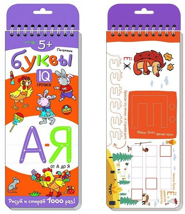 Благодаря специально подобранным картинкам-образам и развивающим заданиям многоразовые прописи помогут ребёнку быстро запомнить все печатные буквы русского алфавита, освоить их написание, провести работу над ошибками и сформировать красивый и аккуратный почерк.