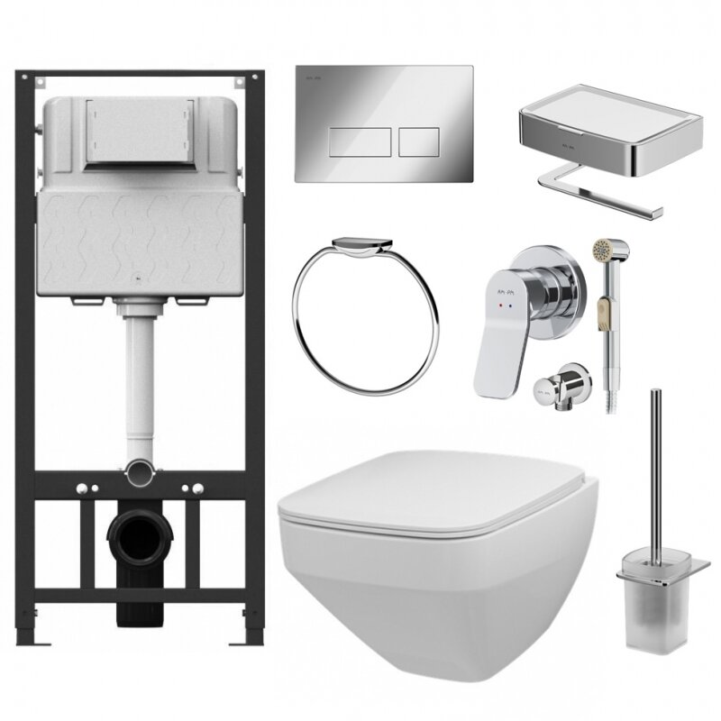 Комплект унитаза с инсталляцией AM.PM Inspire 2.0 CK50GD с сиденьем Микролифт с клавишей смыва Хром с гигиеническим душем и аксессуарами для ванной комнаты