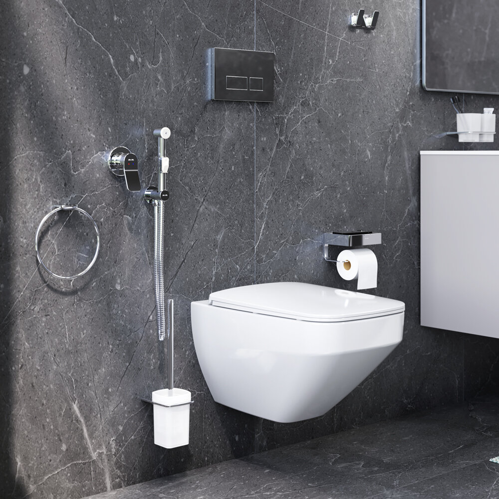 Модель: Inspire 2.0 CK50GD с сиденьем Микролифт с клавишей смыва Хром с гигиеническим душем и аксессуарами для ванной комнаты
