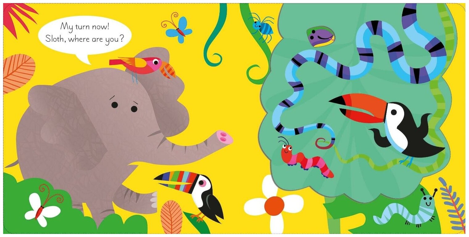 Join tiger for a game of hide and seek with his friends! Little ones will love lifting the large flaps to find all the adorable animals hiding behind, including elephant, sloth, rhino and orangutan. With bright, vibrant illustrations by Gareth Lucas and simple text, this is a charming book to enjoy time and time again.