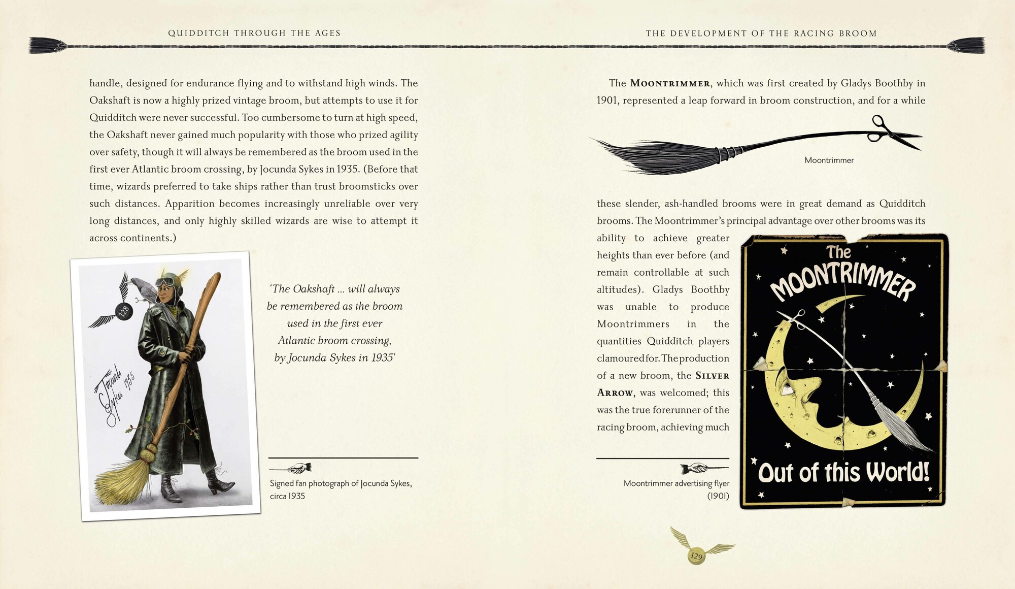 Великолепное иллюстрированное издание о появлении квиддича и обретении этой игрой популярности в мире волшебников, а также о правилах игры, некоторых популярных квиддич-командах и игроках. Помимо этого в книги есть отсылки к известным персонажам из основной серии книг о Гарри Поттере и даже вырезки из газет, где освещаются те или иные событие касаемо игры в квиддич. Книга красочная, отлично смотрится на полке с книгами по вселенной ГП.