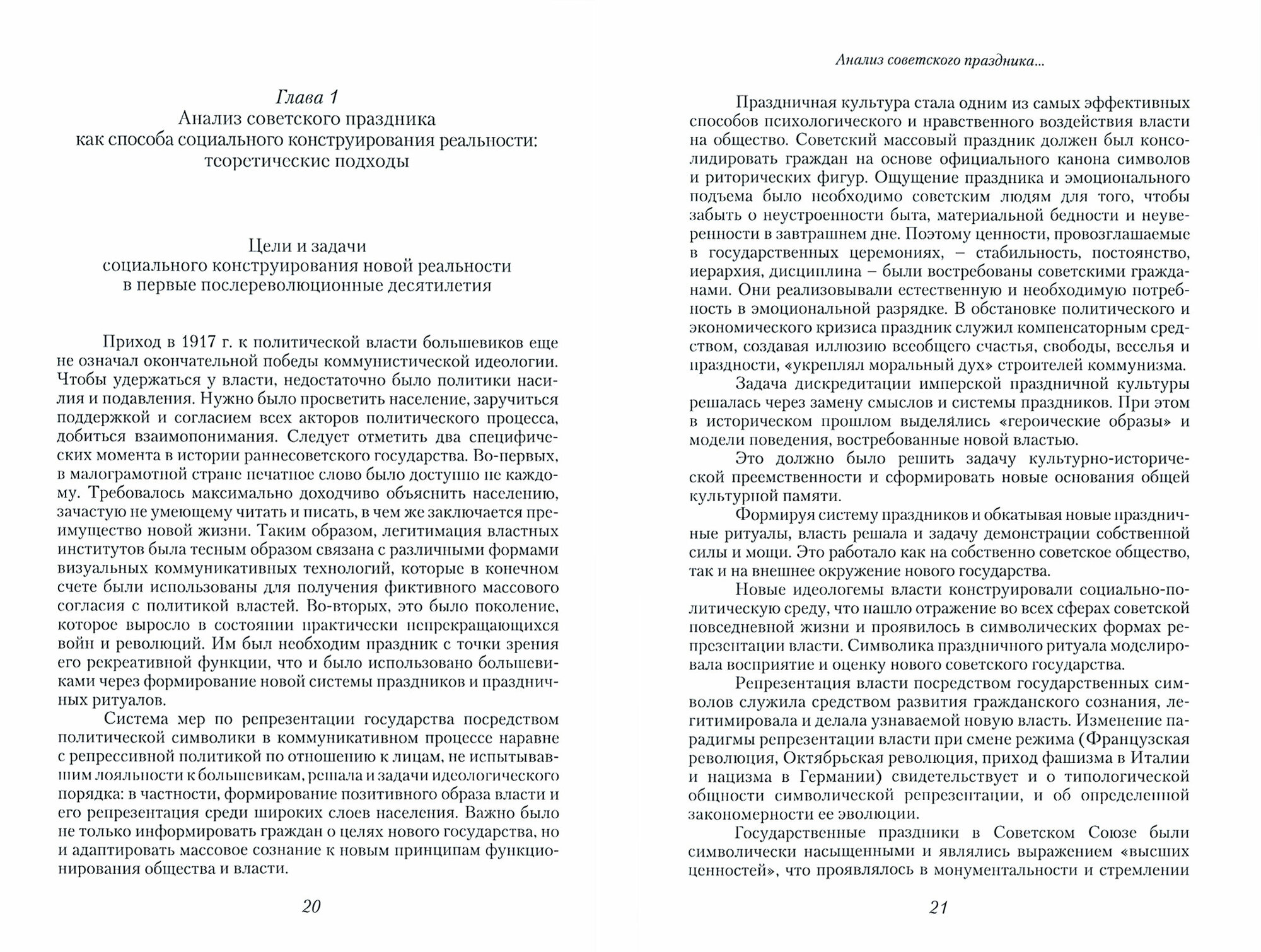 В монографии советские государственные праздники 7 ноября и 1 Мая рассматриваются в контексте целенаправленной политики конструирования социальной реальности в