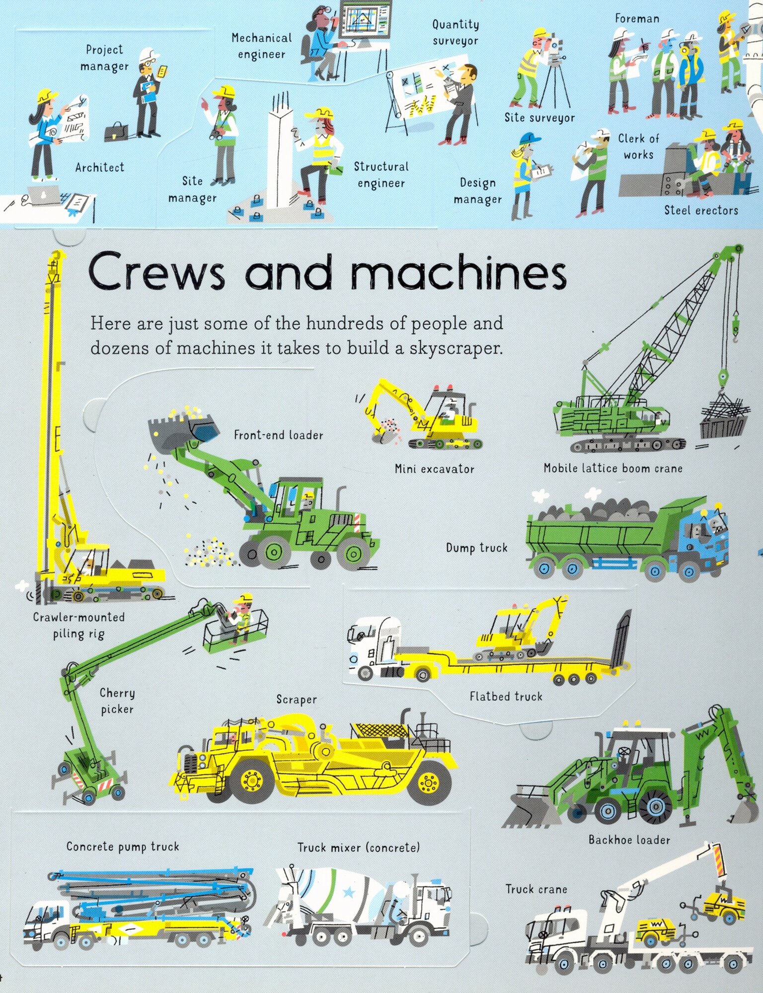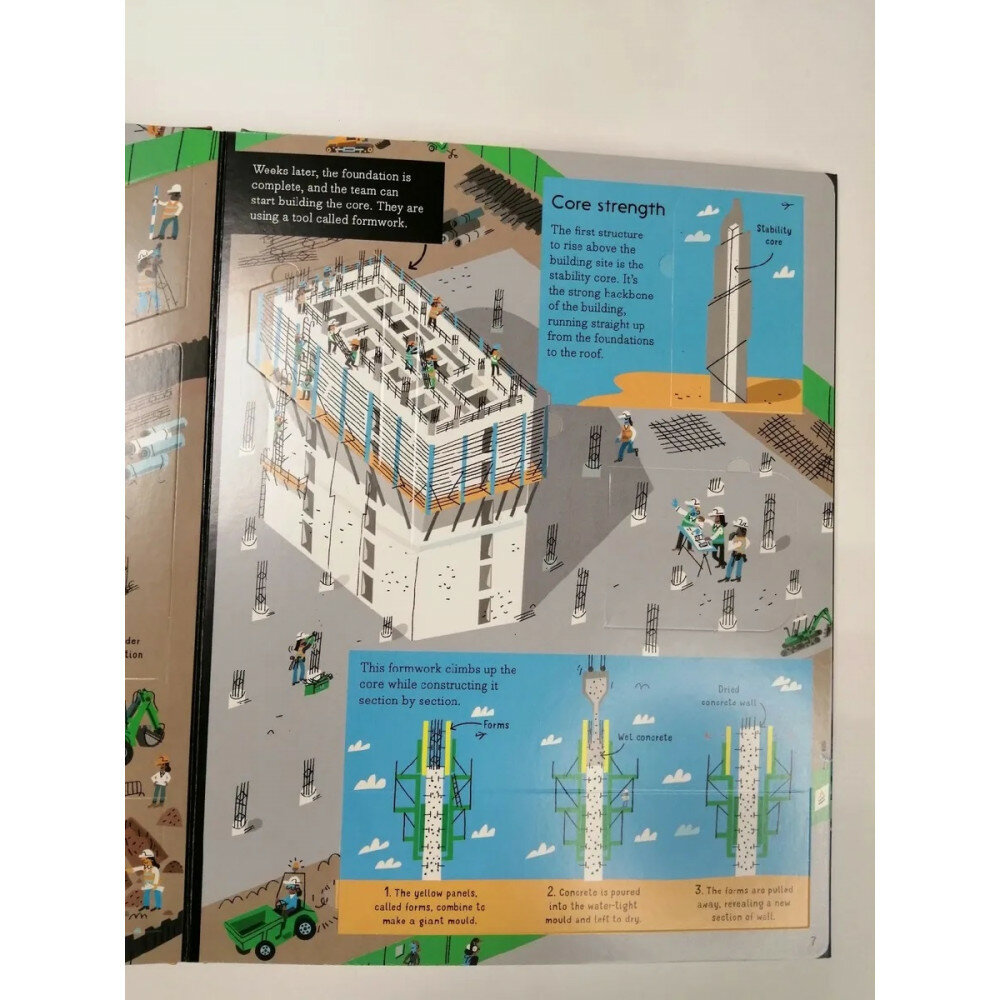 It takes hundreds of people, dozens of machines and years of work to construct a skyscraper. Lift the flaps to see construction crews digging, drilling, pouring, heaving and hoisting as they build a brand new building at the heart of a busy city. Includes Usborne Quicklinks to specially selected websites where you can watch a demolition and fly over skyscrapers.