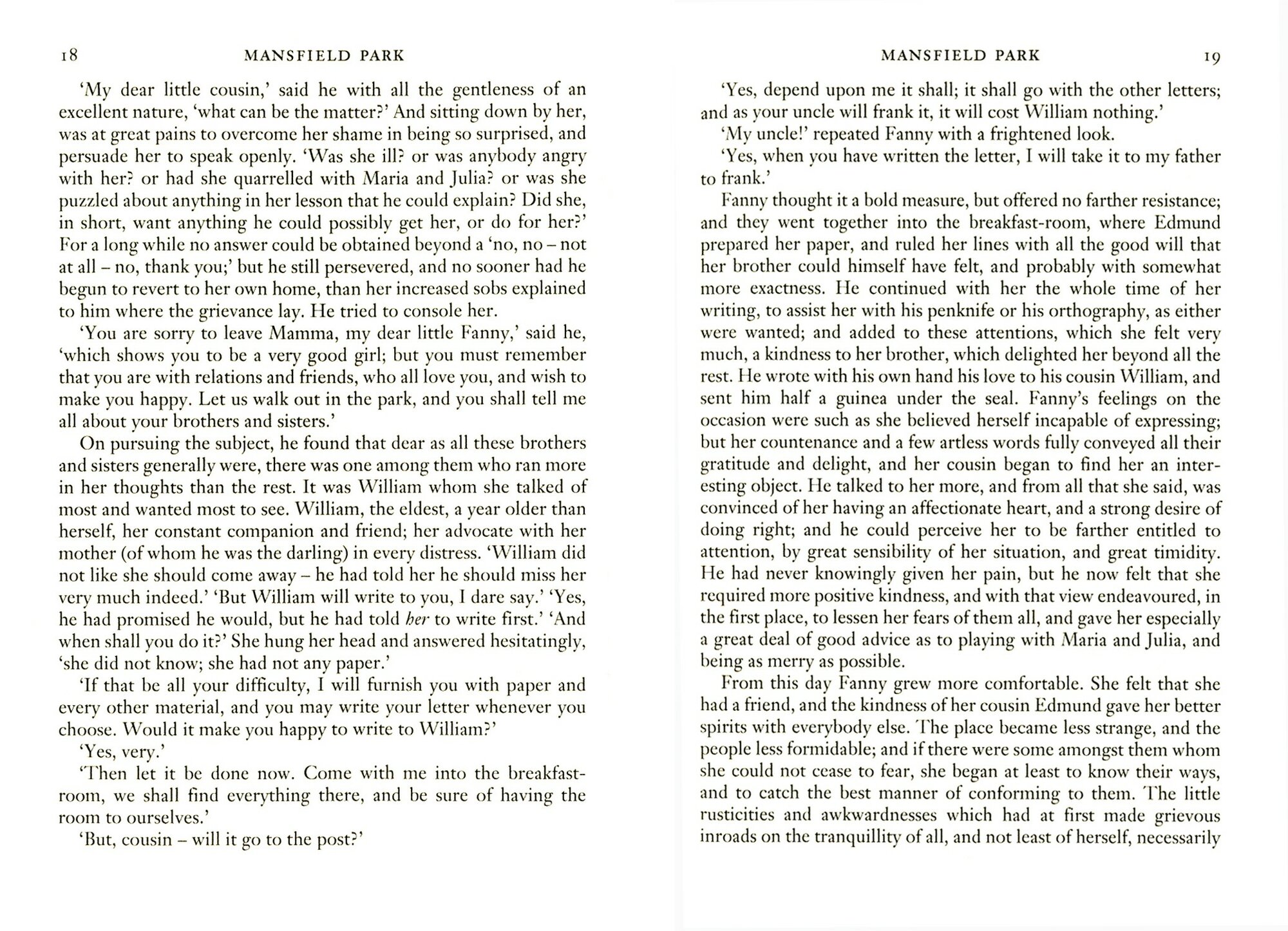 The diffident and much put-upon heroine Fanny Price has to struggle to cope with the results, re-examining her own feelings while enduring the cheerful amorality, old-fashioned indifference and priggish disapproval of those around her.
