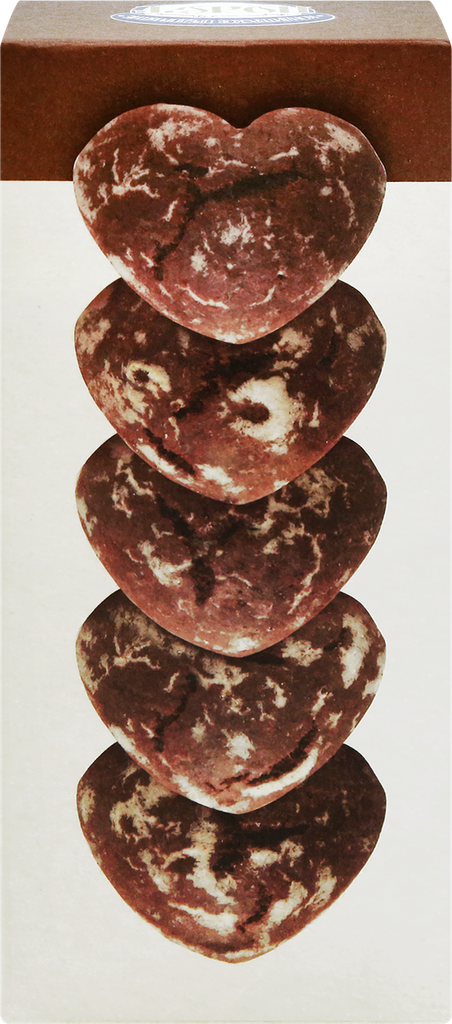 Описание товара:Шоколадные пряники "Полет" — это традиционное угощение к чаю, приготовленное по оригинальному рецепту ГОСТ с добавлением какао-масла. Вкус у натуральных пряников не приторный, сладость уравновешена пикантной горчинкой темного шоколада. Попробуйте их вместе с чашечкой кофе — он подчеркнет шоколадный аромат выпечки. Изделия выпекаются в необычных формах в виде сердечек, хорошо держат форму и не крошатся в упаковке. Побалуйте себя и близких или угостите гостей!Состав товара:Мука пшеничная хлебопекарная, сахар, патока, масло подсолнечное рафинированное дезодорированное, вода питьевая, мука ржаная хлебопекарная обдирная, шоколад горький (какао-тертое, сахар, какао масло, эмульгатор (лецитин соевый), ароматизатор), какао тёртое, какао порошок натуральный, молоко сухое цельное, разрыхлитель - гидрокарбонат аммония, консервант сорбат калия.
