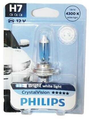 Галогенные лампы головного освещения Philips CrystalVision излучают яркий белый свет до 4300 К и станут стильным решением для автомобиля. Благодаря голубому покрытию и серебристому колпачку лампы придадут стильный вид вашему автомобилю.