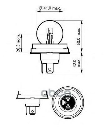 Лампа автом.накал. Philips R2 12В 45Вт (упак.:1шт) 12620B1