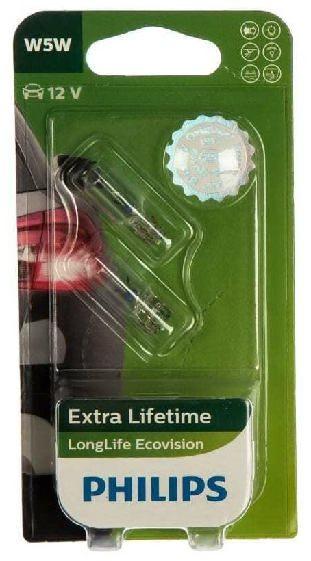 Лампа автом.накал. Philips W5W 12В 5Вт (упак.:2шт) 12961LLECOB2