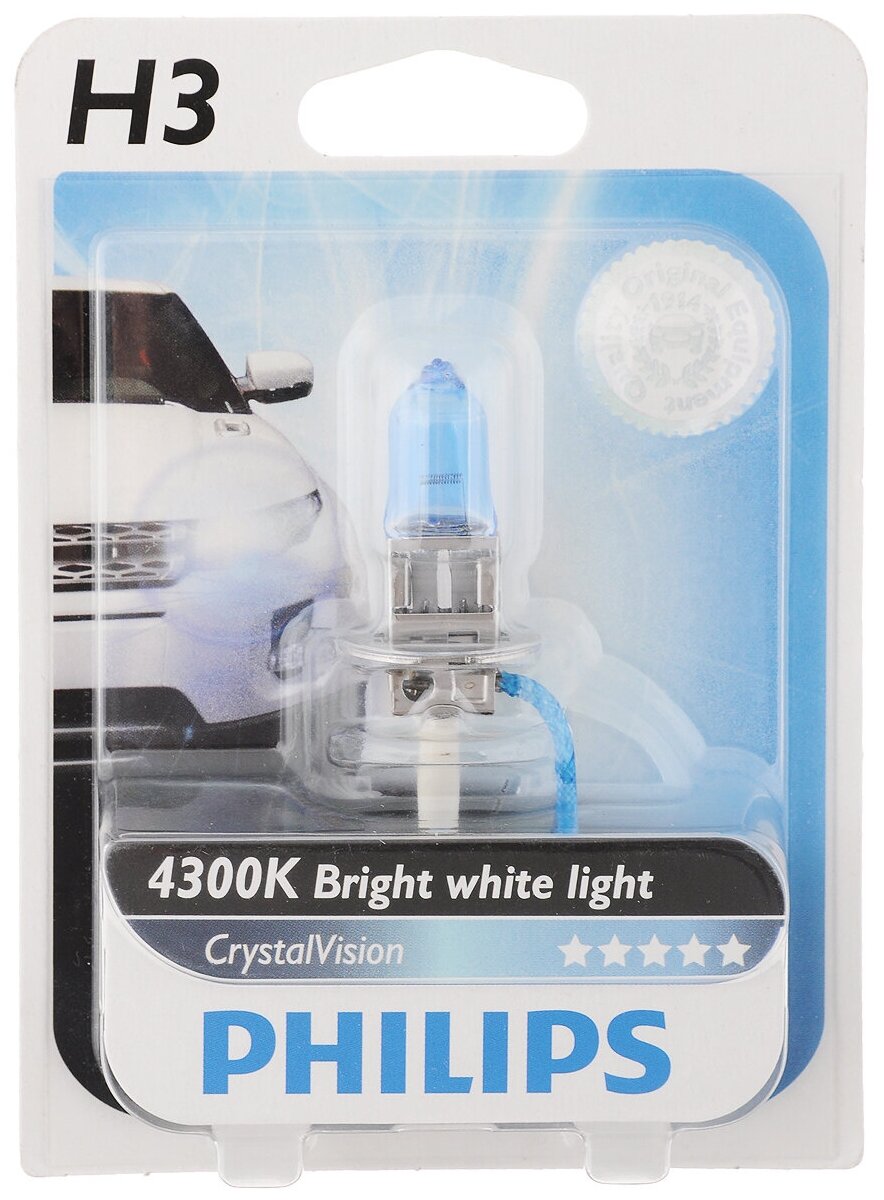 Галогенные лампы головного освещения Philips CrystalVision излучают яркий белый свет 4300 К и станут стильным решением для автомобильного освещения. Благодаря голубому покрытию и серебристому колпачку лампа станет стильным элементом в дизайне автомобиля.