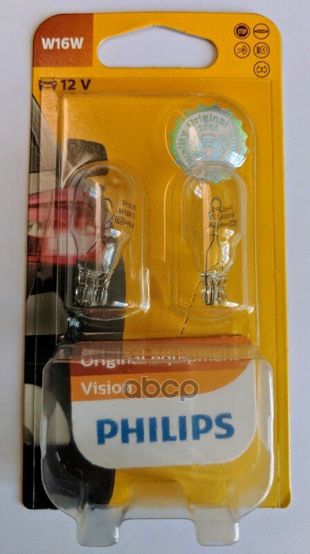 Лампа автом.накал. Philips W16W 12В 16Вт (упак.:2шт) 12067B2