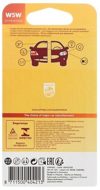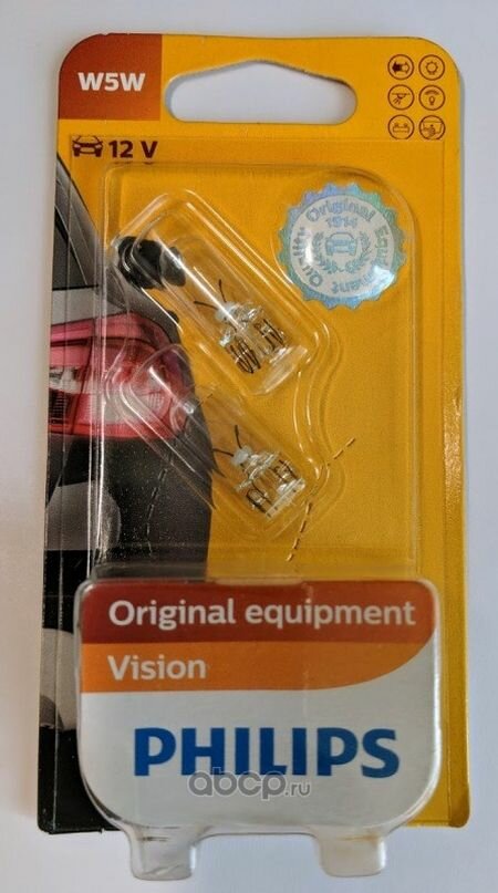 Лампа автом.накал. Philips W5W 12В 5Вт (упак.:2шт) 12961B2