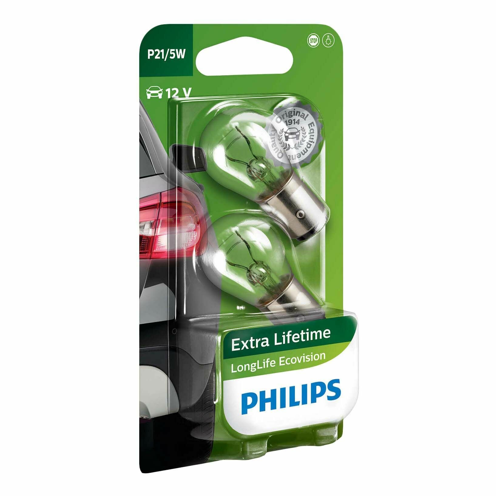 Лампа автом.накал. Philips P21/5W 12В 21Вт (упак.:2шт) 12499LLECOB2