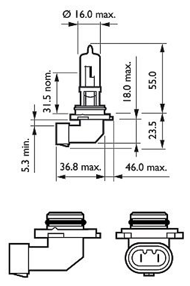 | Типоразмер | HB3; цоколь:P20d |