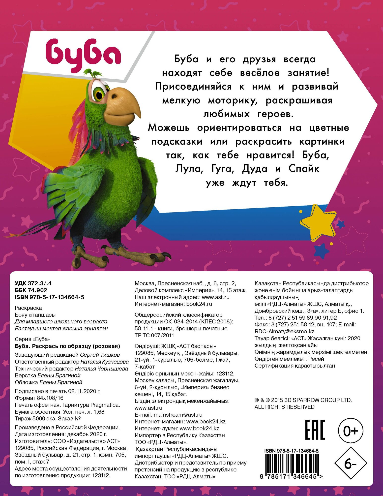 Буба. Раскрась по образцу (розовая) (Кузнецова Н. (ред.)); ИЗДАТЕЛЬСТВО "АСТ", 2021