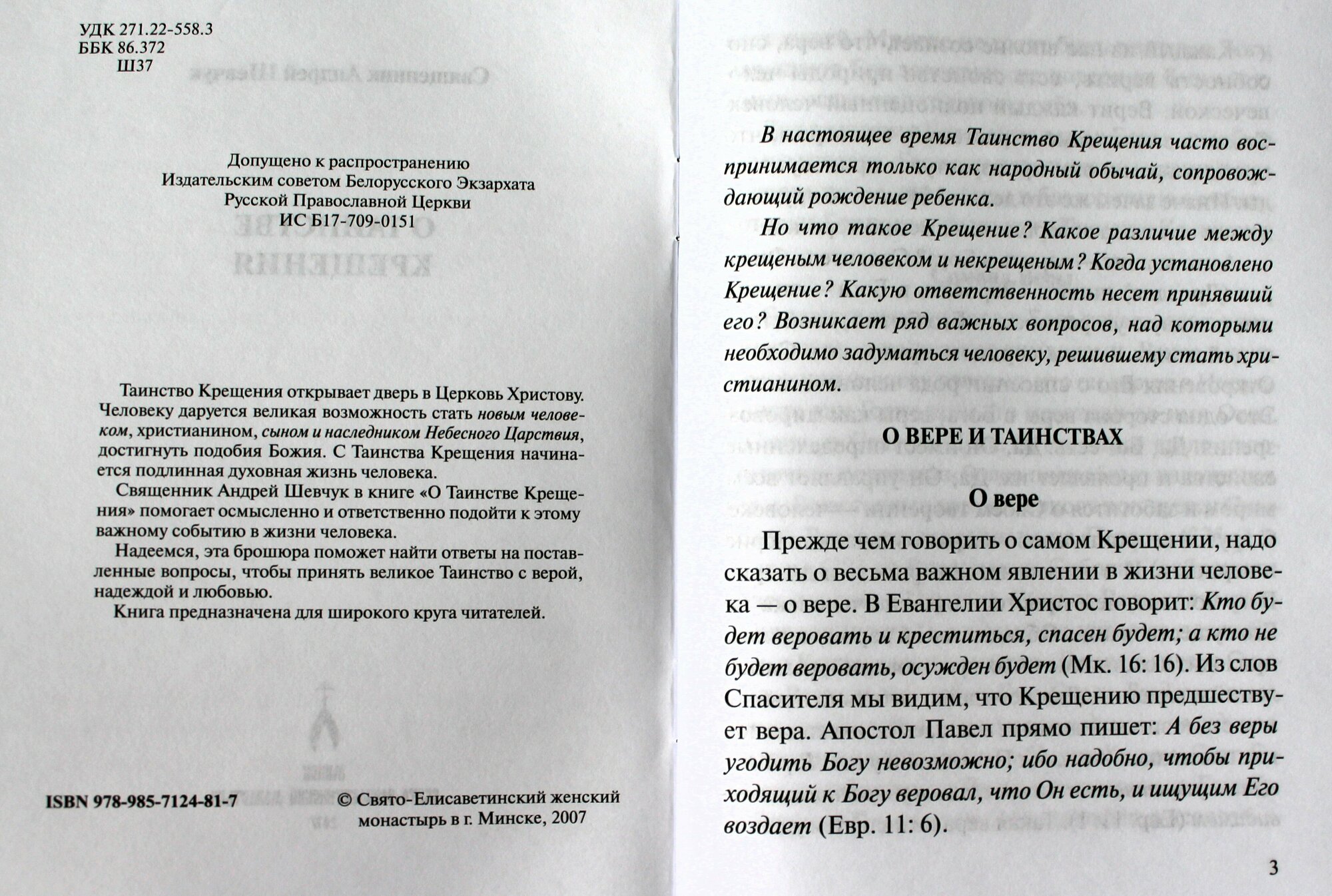 Книга: О таинстве Крещения (Священник Андрей Шевчук); Свято-Елисаветинский женский монастырь в городе Минске, 2017