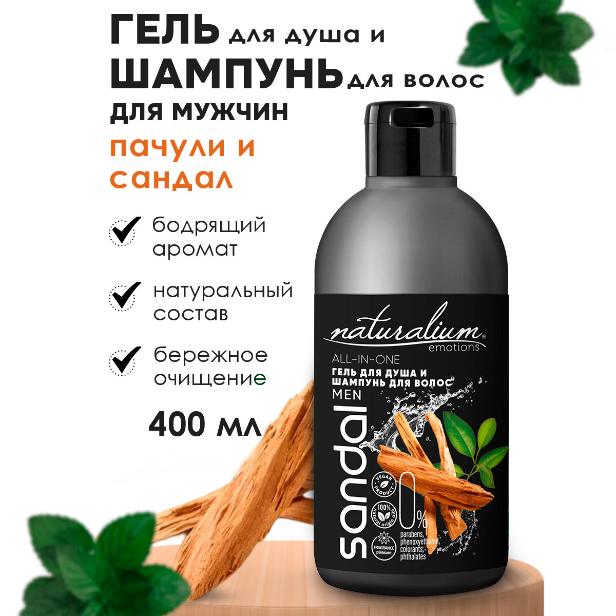 Гель для душа Naturalium Мужской Сандаловое дерево и пачули 400мл Дельта Бьютилаб