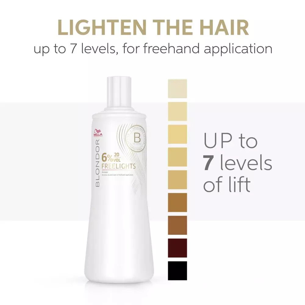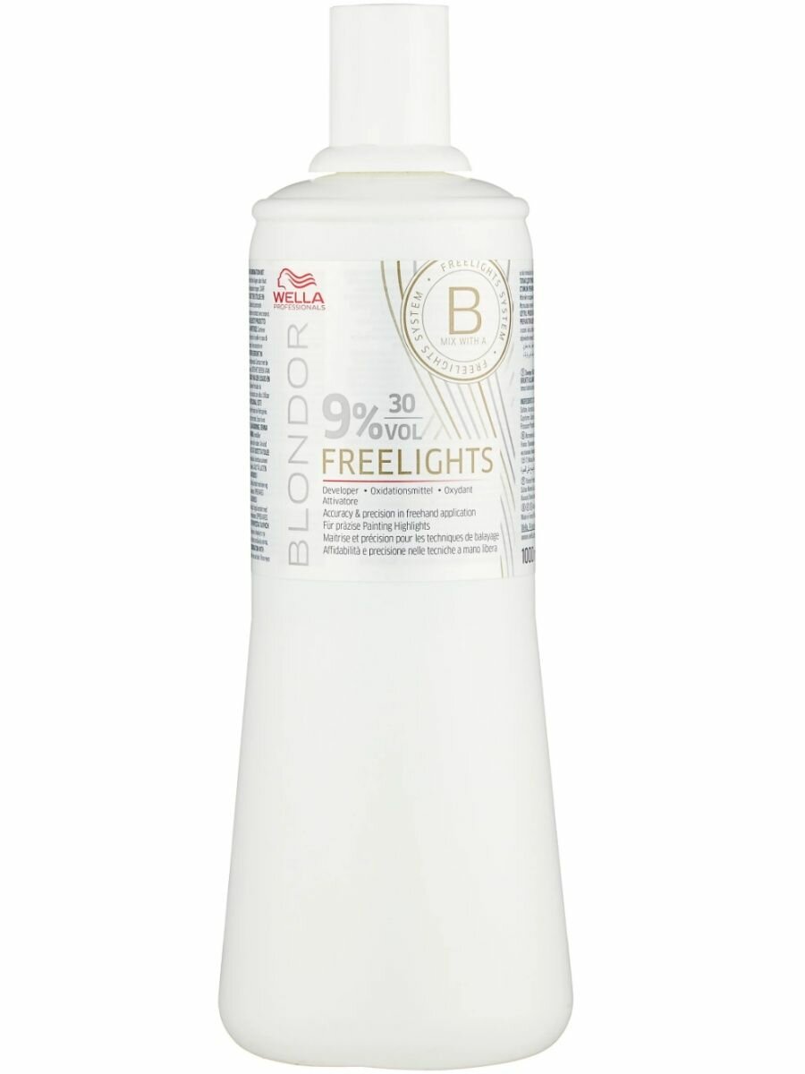 Для получения всех заявленных преимуществ окислитель необходимо смешивать с обесцвеющей пудрой Wella FreeLights.