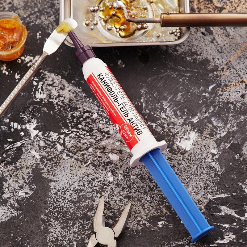 Флюс-гель для пайки в шприце предназначен для пайки и лужения деталей при сборке и ремонте радио-электронной аппаратуры в промышленности и быту.