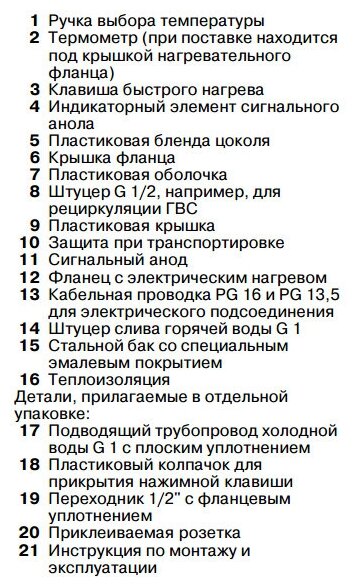 | Оснащение | световой индикатор, индикатор нагрева, антикоррозийный анод, термометр |