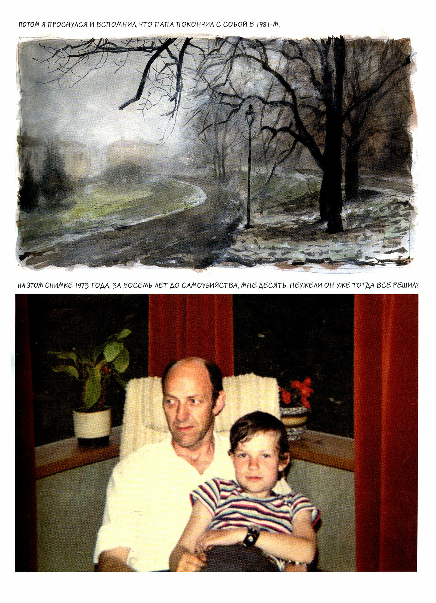 Новая книга Стеффена Квернеланна "Мертв по собственному желанию" глубоко личная: в ней рассказывается о самоубийстве его отца и о том, как это повлияло на жизнь автора, которому было тогда всего 18 лет. Помимо потрясающих рисунков Квернеланна, в книге использованы настоящие семейные фотографии, придающие сюжету динамичности и драматизма. История рассказана с изрядной долей юмора, что делает ее еще более пронзительной.
