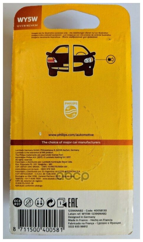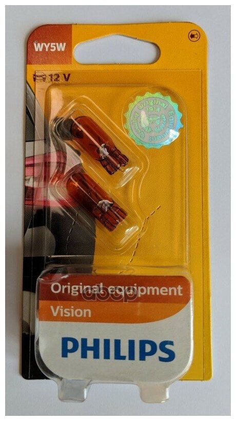 Лампа автом.накал. Philips WY5W 12В 5Вт (упак.:2шт) 12396NAB2