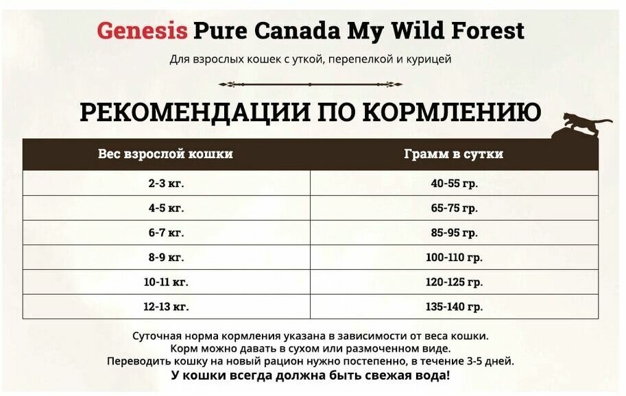 Корма Genesis Pure Canada производятся по строгим немецким стандартам качества. В качестве основного источника животного белка используется высококачественное куриное мясо. Дополняют курицу утка, кабан, перепел, гусь, говядина, форель и лосось в различных сочетаниях в зависимости от назначения рациона, которые обеспечивают идеальный баланс питательных веществ. Genesis Pure Canada - это наивысший стандарт качества в питании домашних животных.